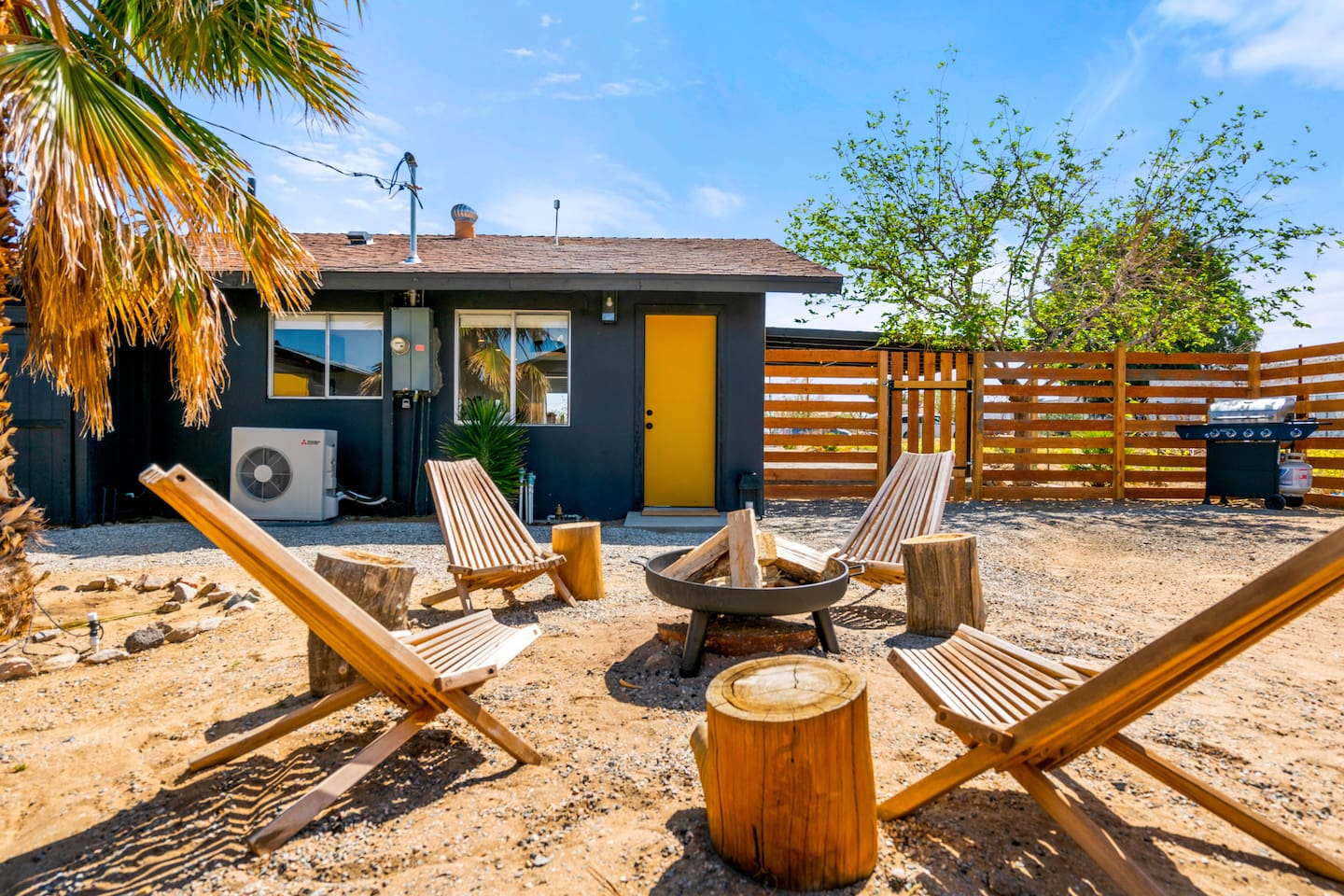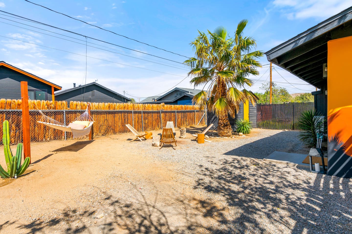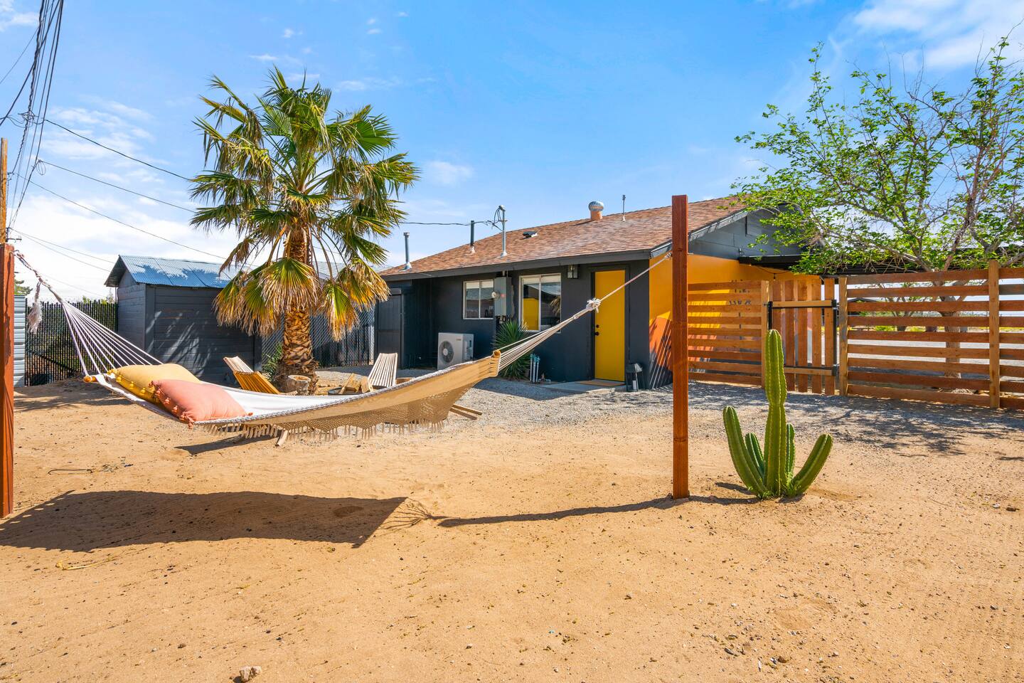 Escape to Little Cactus, a boho desert retreat just a short walk to downtown Joshua Tree. Unwind in the outdoor cowboy tub, sway in the hammock, or gather by the propane fire pit under starry skies. Inside, enjoy a full kitchen, smart TV, workspace, and bright, cozy vibes. The private fenced yard, grill, and stylish decor make this the perfect high desert hideaway. 2 min to downtown JTree, 14 min to Joshua Tree National Park.