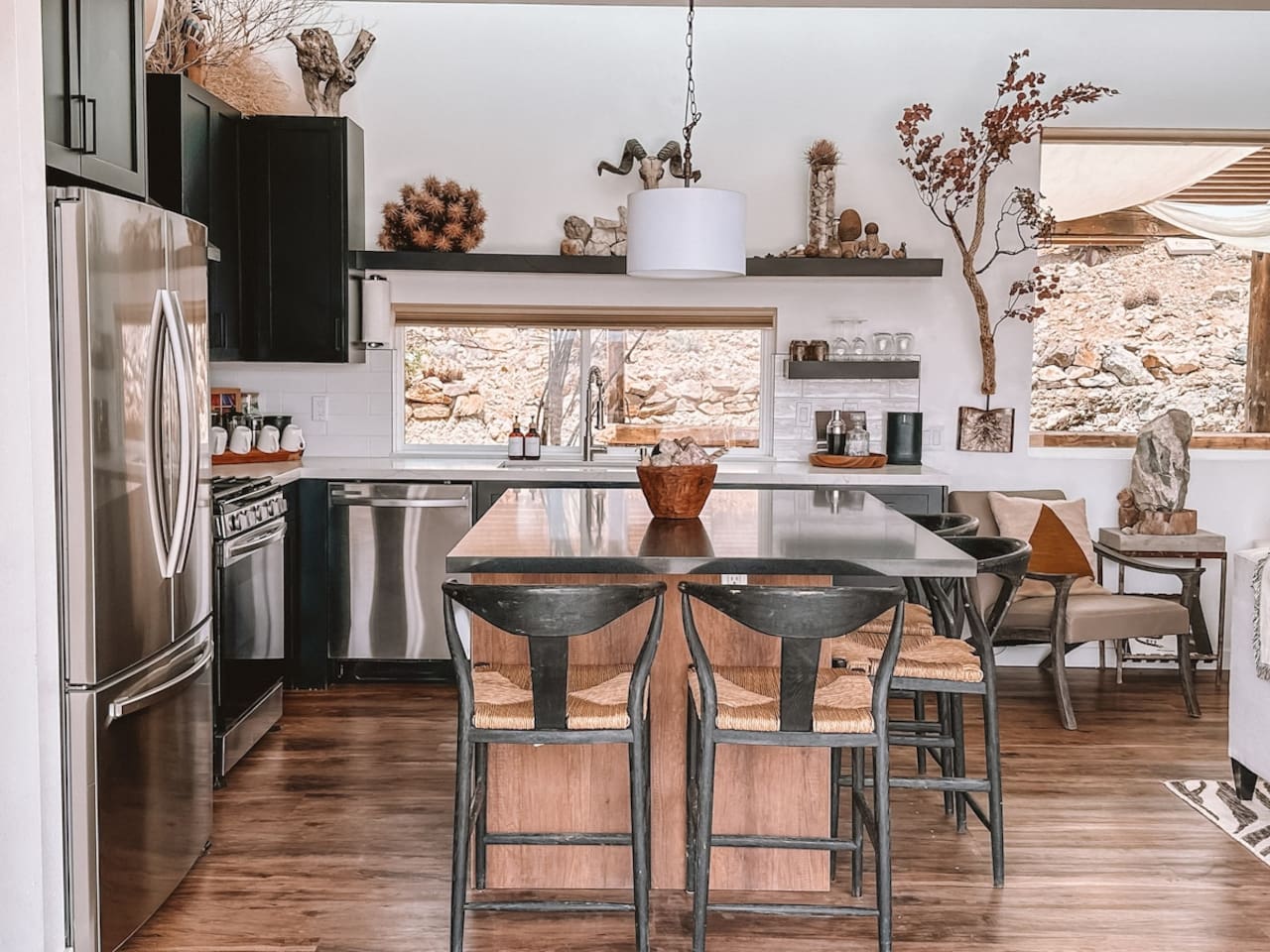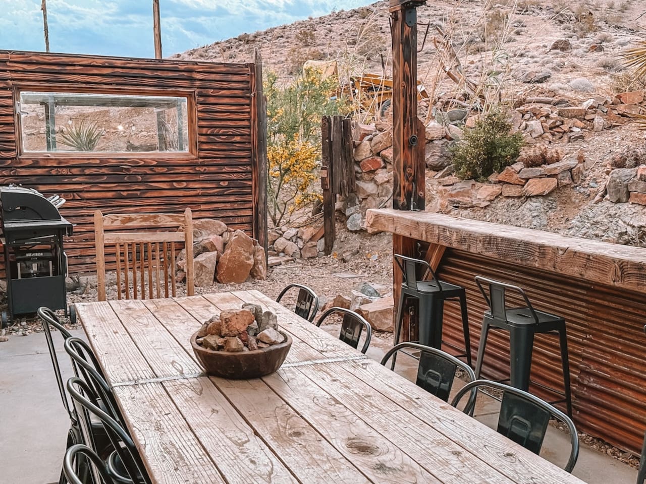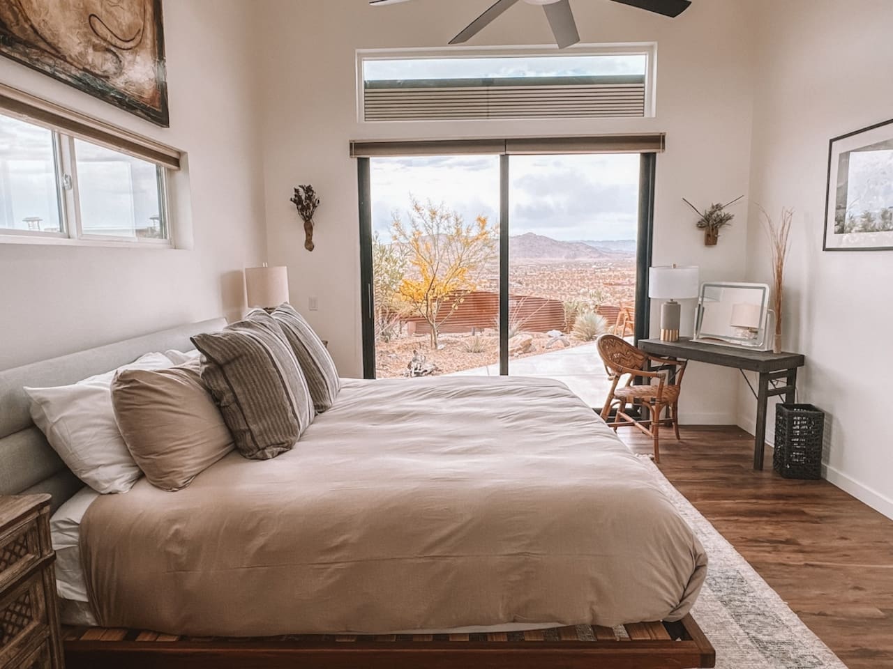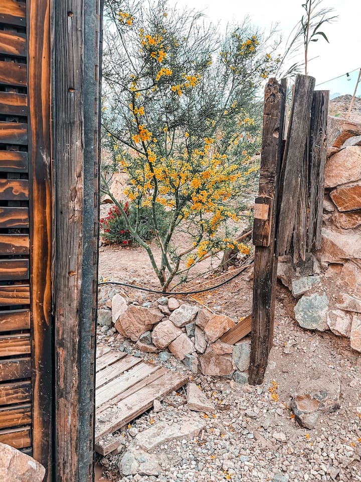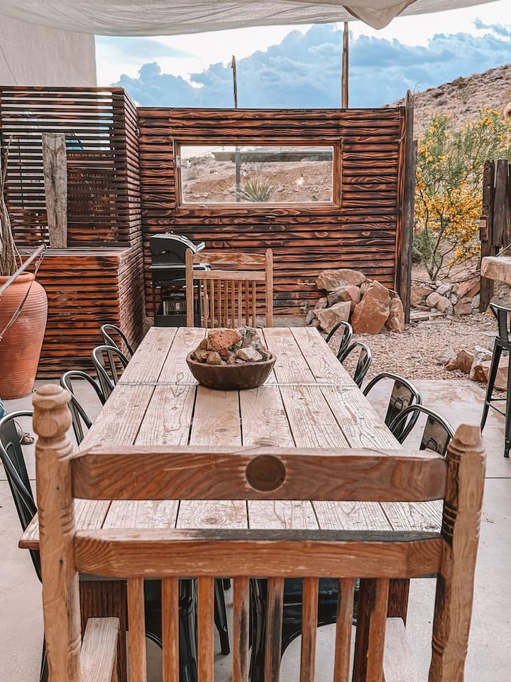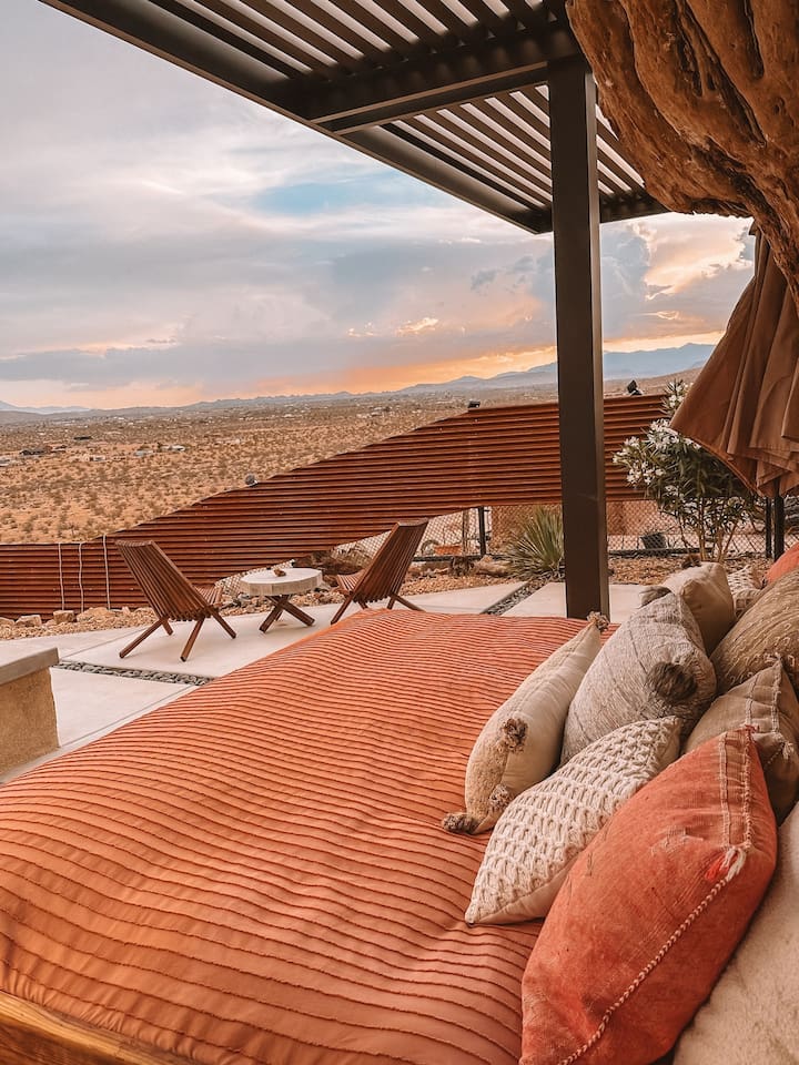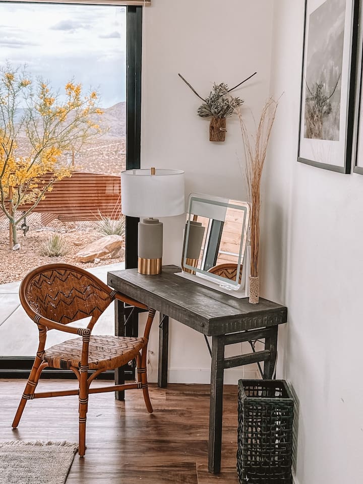 The home is situated in a beautiful and tranquil area of North Joshua Tree by the Yucca Mesa. Below are travel times to nearby shops, bars, eateries and attractions: ► 14 minutes ➔ Downtown Joshua Tree ► 17 minutes ➔ La Copine Fine Dining, Giant Rock Meeting Room Pizza & Bar ► 18 minute ➔ The Copper Room Historic Airport Restaurant & Bar ► 18 minutes ➔ The Integratron Sound Baths ► 19 minutes ➔ Old Town Yucca Valley Shops and Restaurants ► 23 minutes ➔Joshua Tree West National Park Entrance ► 26 minutes ➔ Pioneertown: Pappy and Harriet’s & Red Dog Saloon ► 29 minutes ➔ Downtown Twentynine Palms ► 55 minutes ➔ Palm Springs