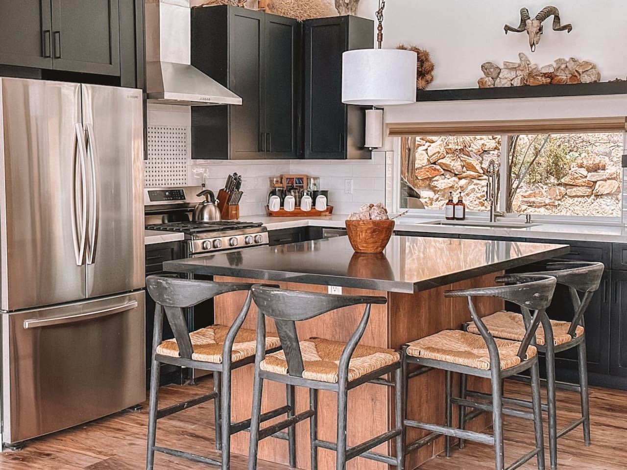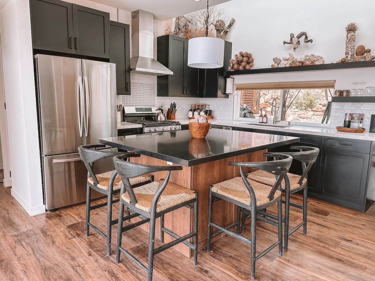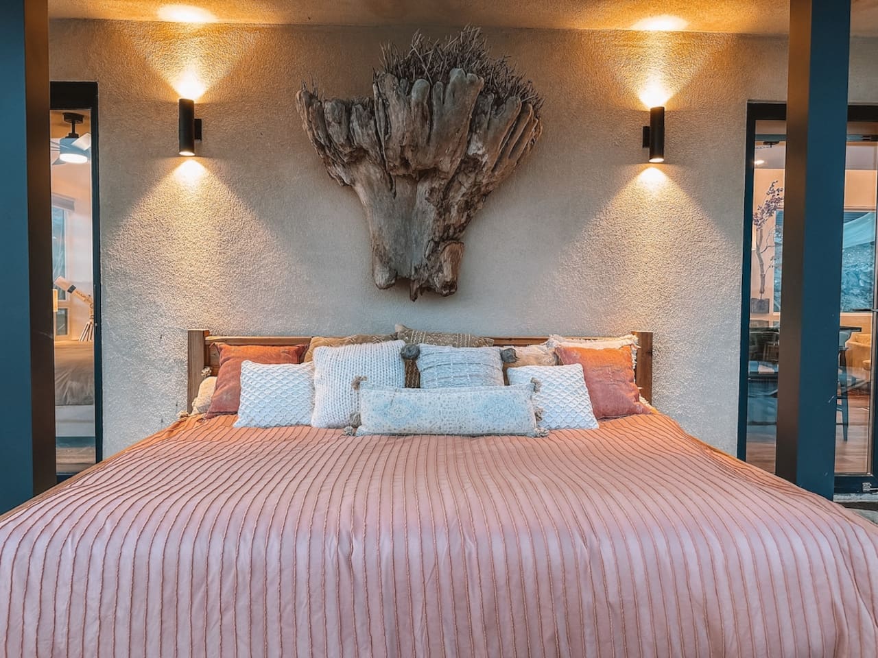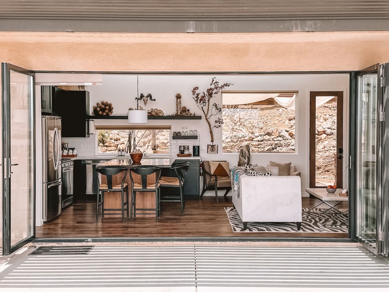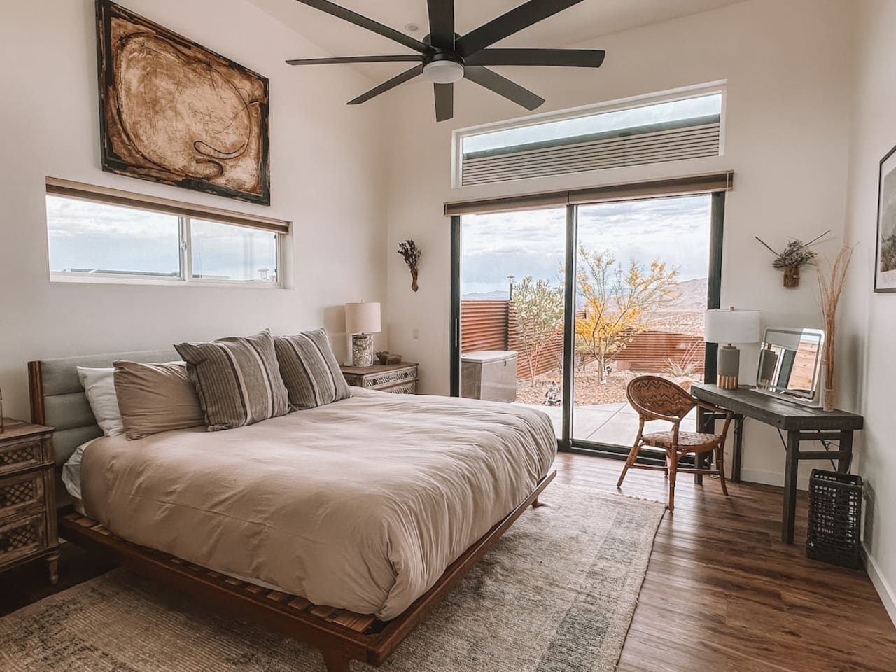 The home is situated in a beautiful and tranquil area of North Joshua Tree by the Yucca Mesa. Below are travel times to nearby shops, bars, eateries and attractions: ► 14 minutes ➔ Downtown Joshua Tree ► 17 minutes ➔ La Copine Fine Dining, Giant Rock Meeting Room Pizza & Bar ► 18 minute ➔ The Copper Room Historic Airport Restaurant & Bar ► 18 minutes ➔ The Integratron Sound Baths ► 19 minutes ➔ Old Town Yucca Valley Shops and Restaurants ► 23 minutes ➔Joshua Tree West National Park Entrance ► 26 minutes ➔ Pioneertown: Pappy and Harriet’s & Red Dog Saloon ► 29 minutes ➔ Downtown Twentynine Palms ► 55 minutes ➔ Palm Springs
