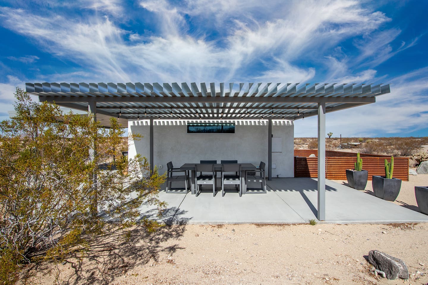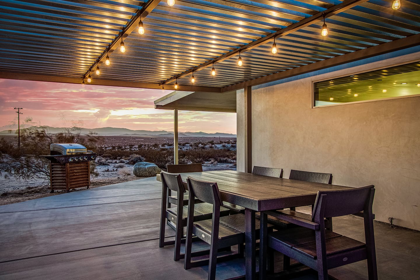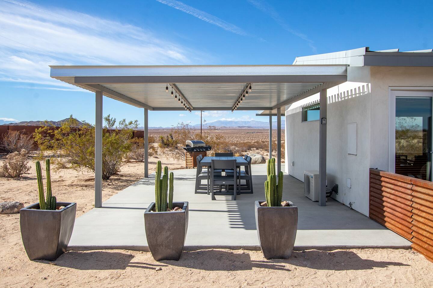 Cook up your favorites in the designer kitchen, equipped with all the essentials (plus a few extras, like fresh Joshua Tree Coffee). Prep meals on ample counter space, gather at the island for cocktails, or enjoy alfresco dining on the shaded porch. A gas grill outside beckons for sunset BBQs.