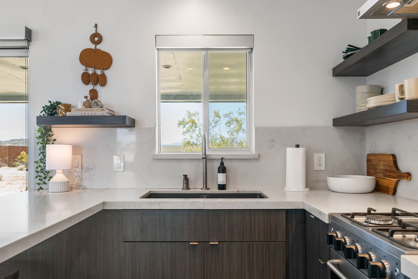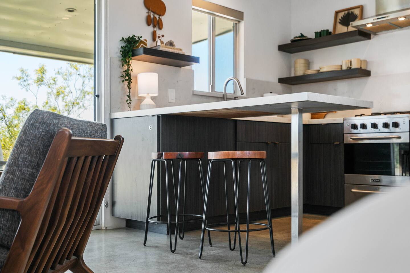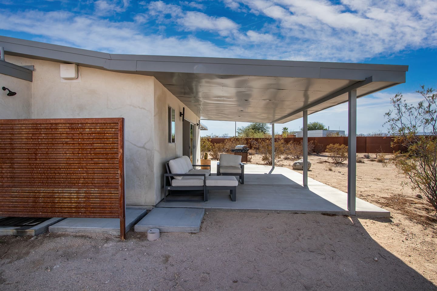 Cook up your favorites in the designer kitchen, equipped with all the essentials (plus a few extras, like fresh Joshua Tree Coffee). Prep meals on ample counter space, gather at the island for cocktails, or enjoy alfresco dining on the shaded porch. A gas grill outside beckons for sunset BBQs.