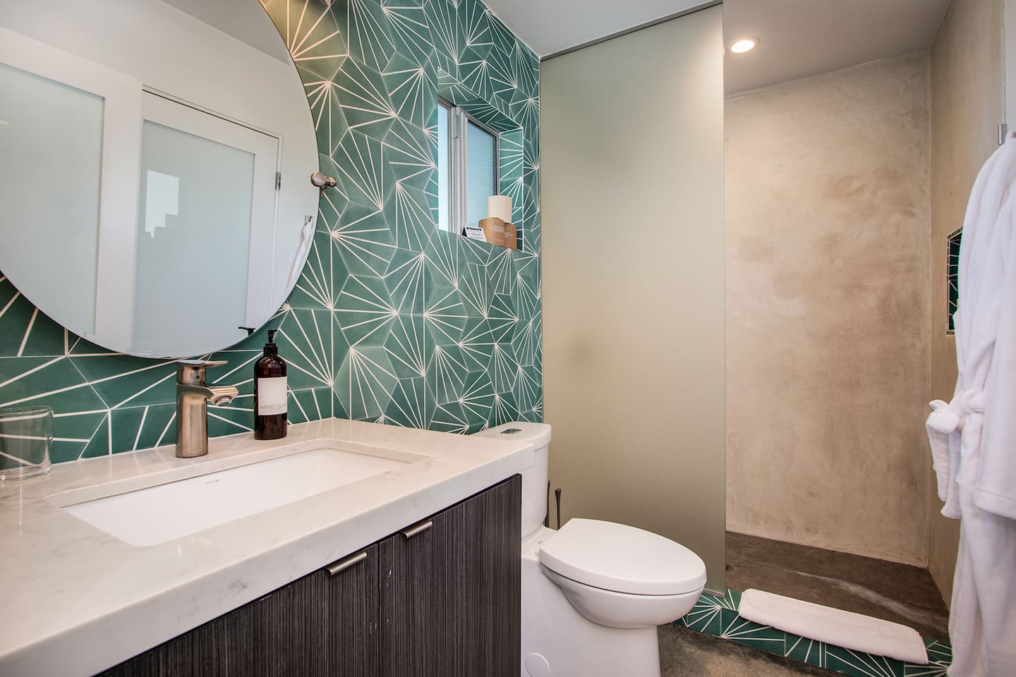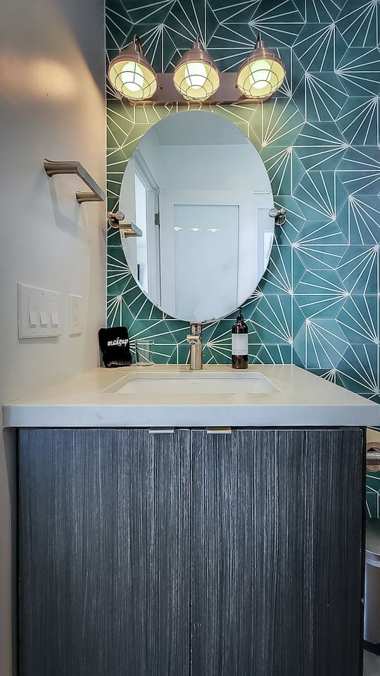 Freshly redesigned with modern desert flair, the spa-like bathroom features a stunning plaster and tile accent wall, Seaweed Bath Co toiletries, soft towels, and a spacious walk-in shower — perfect after a day on the trails. Plenty of closet space makes it easy to unpack and settle in.
