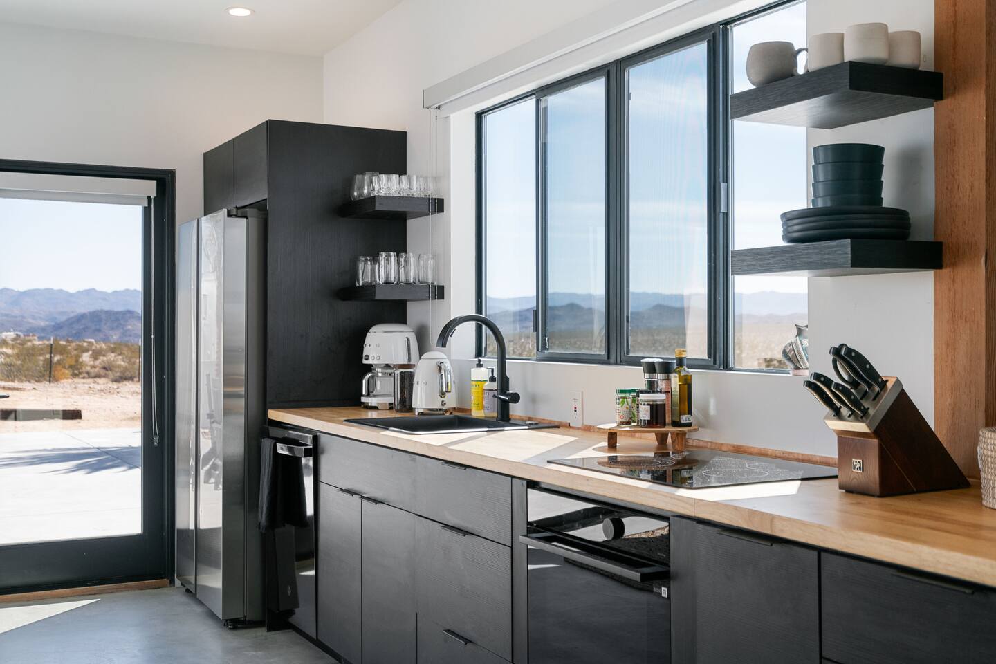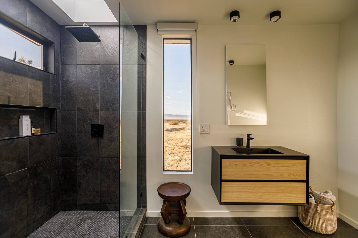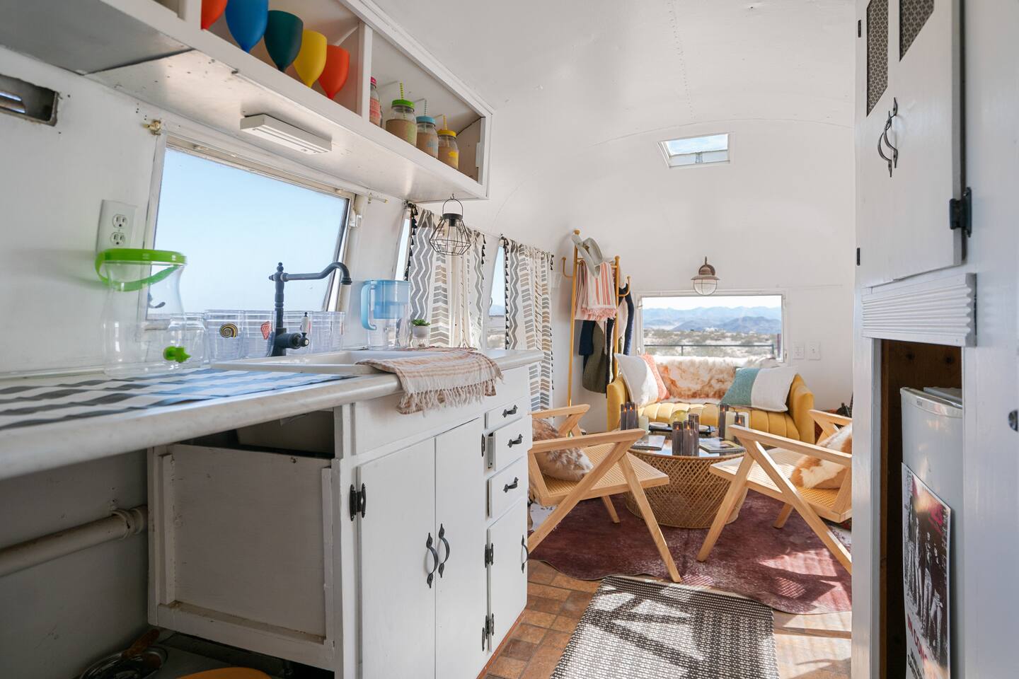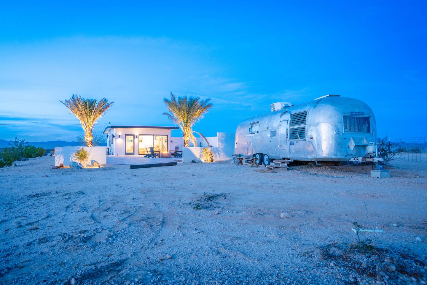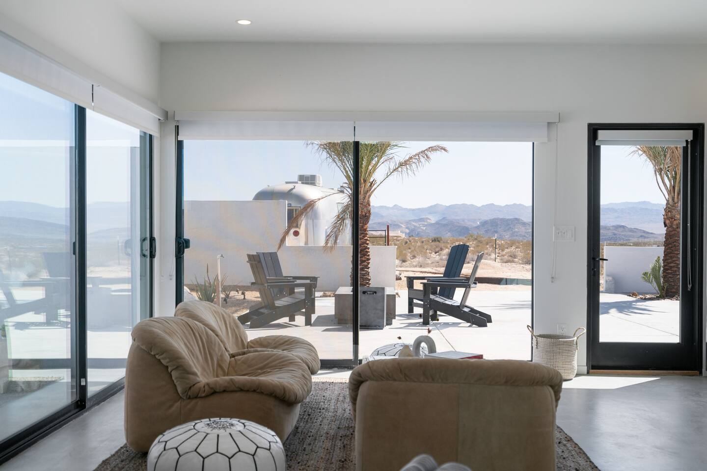 Perched on a ridge line in north Joshua Tree, this newly remodeled cabin is the ultimate escape. Stunning views of sweeping empty desert lead to uninterrupted night sky stargazing for that middle of nowhere experience only the hi desert can deliver. The modern cabin features a hot tub, gas firepit, outdoor dining area and a charming boho Airstream perfect for a lazy day hang or crash pad. A mix of modern and interesting, this cabin is why people come to Joshua Tree