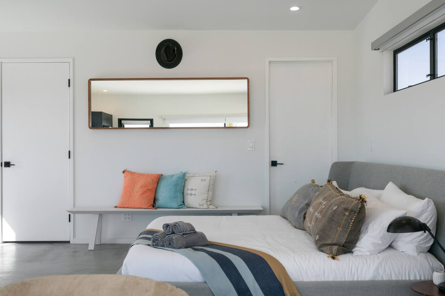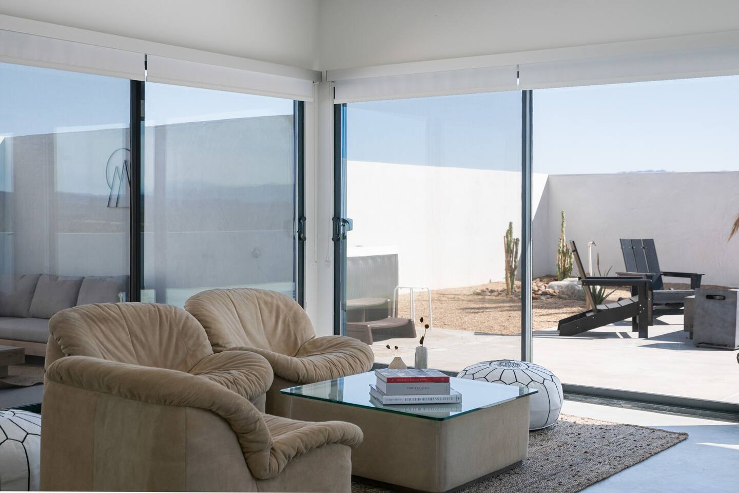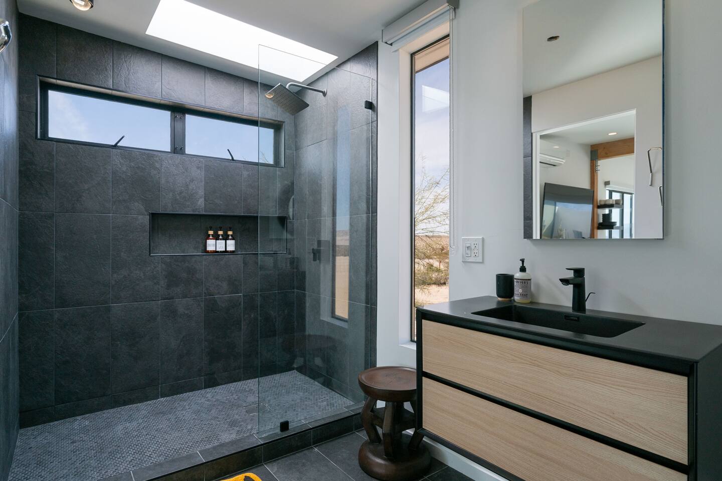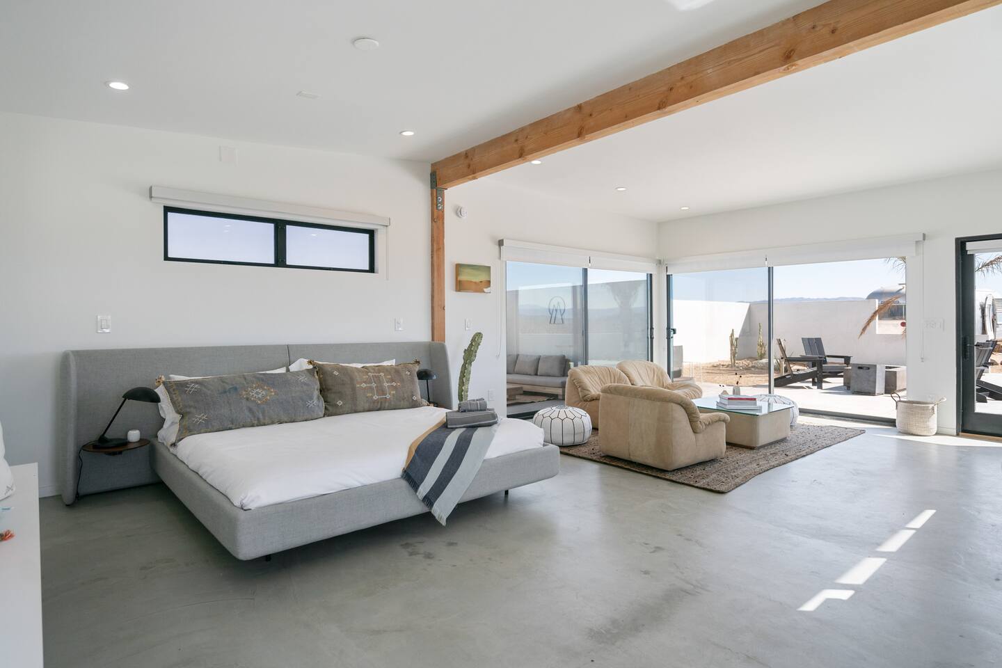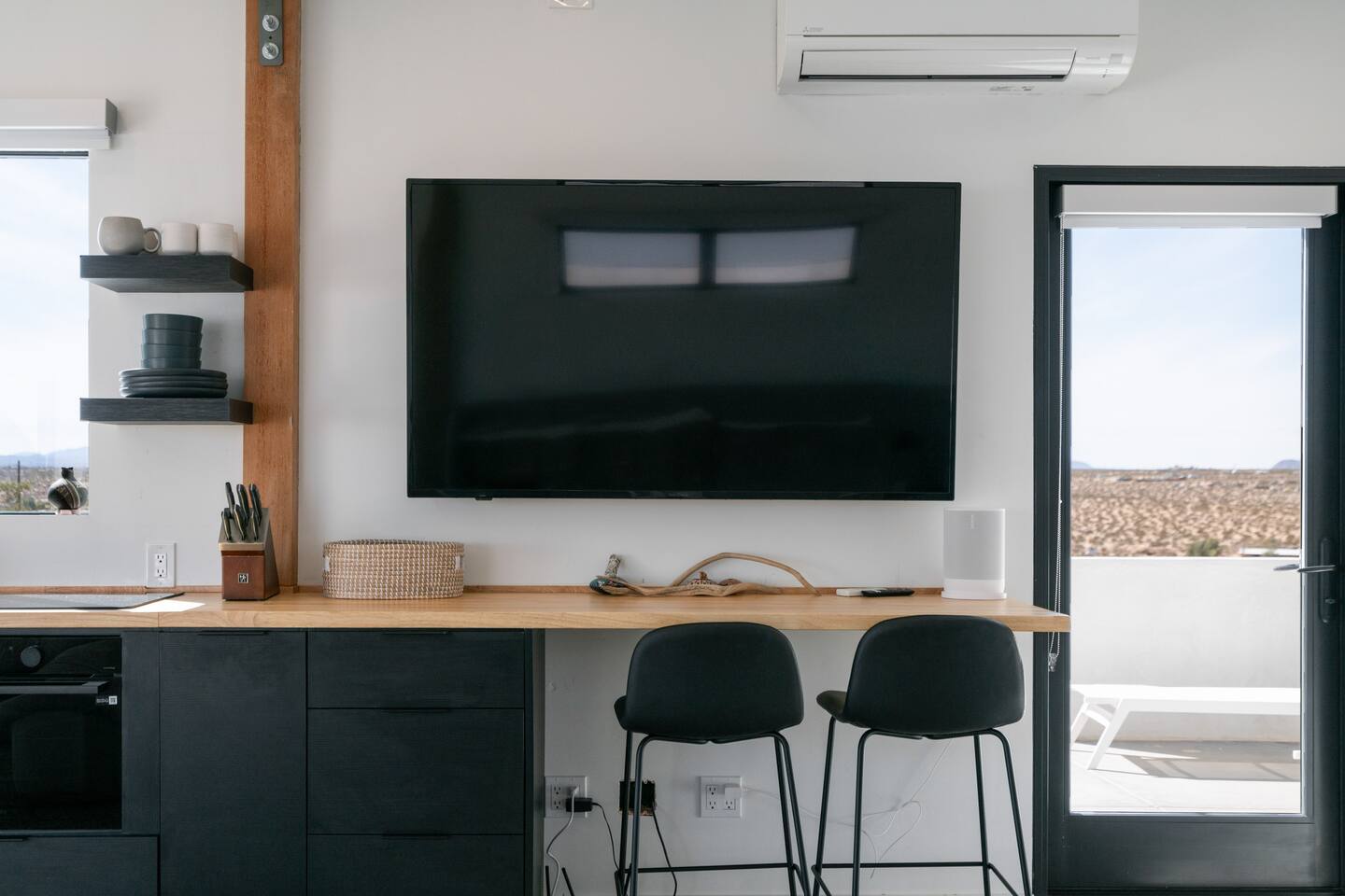 Perched on a ridge line in north Joshua Tree, this newly remodeled cabin is the ultimate escape. Stunning views of sweeping empty desert lead to uninterrupted night sky stargazing for that middle of nowhere experience only the hi desert can deliver. The modern cabin features a hot tub, gas firepit, outdoor dining area and a charming boho Airstream perfect for a lazy day hang or crash pad. A mix of modern and interesting, this cabin is why people come to Joshua Tree