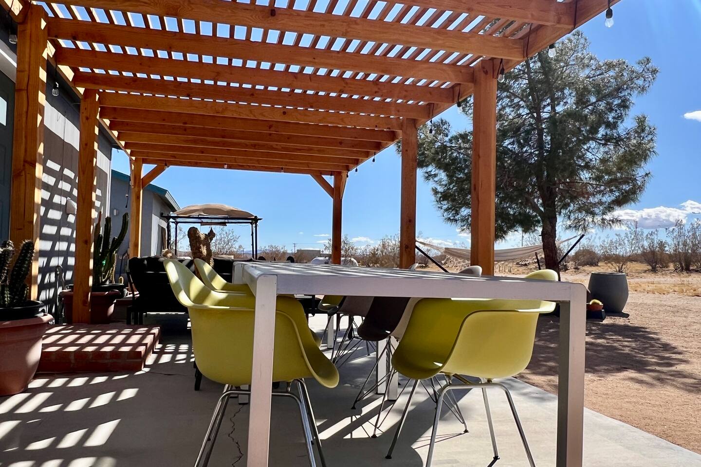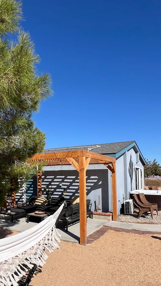 Indulge in the allure of La Casa Fortuna, a relaxing private retreat near Joshua Tree. Experience luxury with 2 king beds, 1 queen bed, luxury linens, and 2 soaking tubs! Soak in the hot tub under the stars, lounge in the hammocks, and dine al fresco on 5 acres of captivating land. Explore the enchantment of Joshua Tree National Park. Your extraordinary desert escape awaits! Book now for an unforgettable adventure!