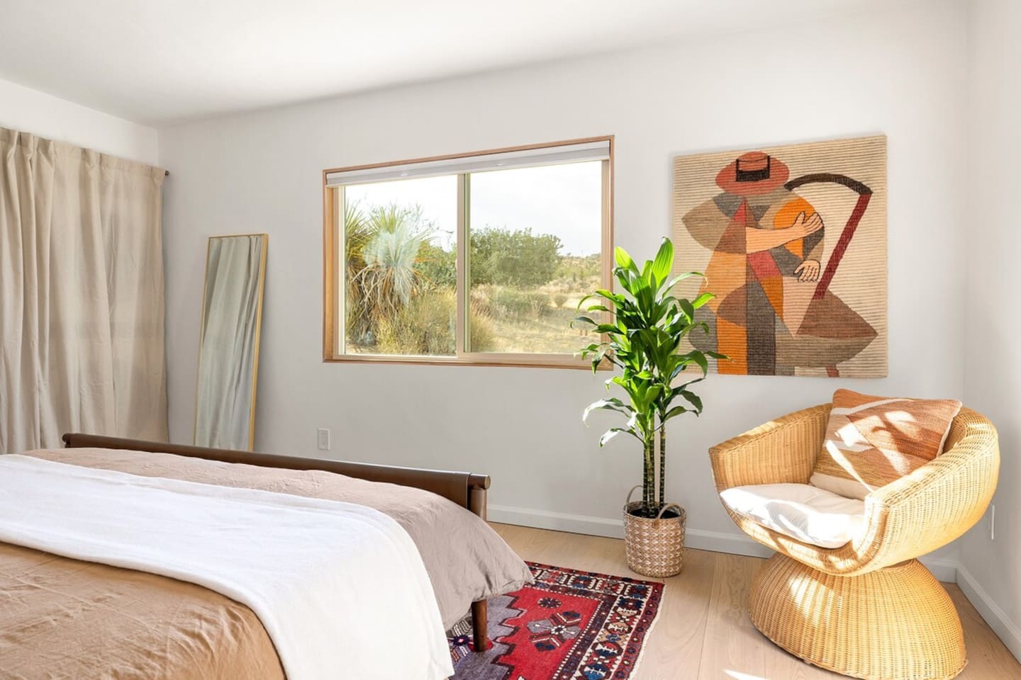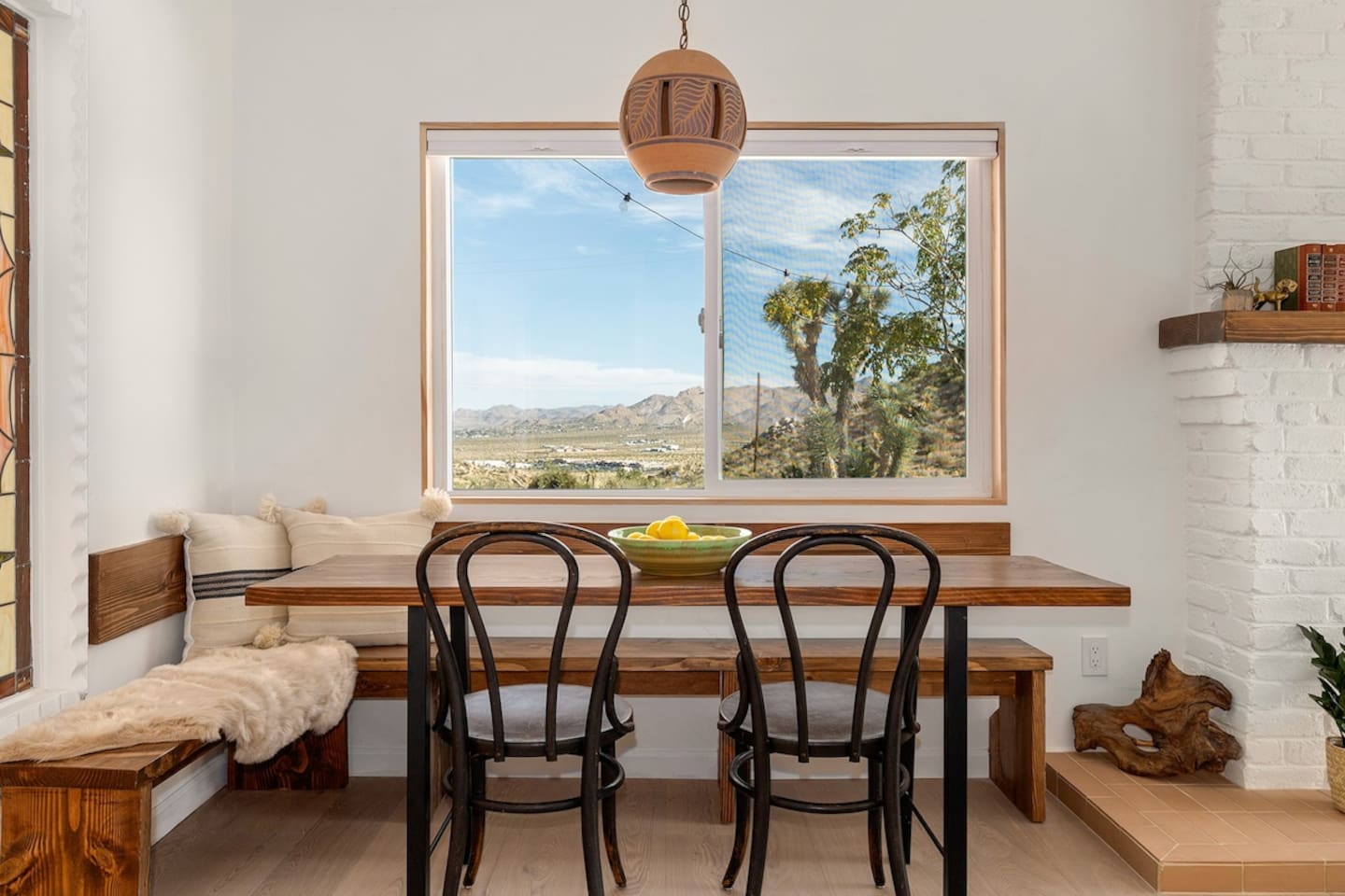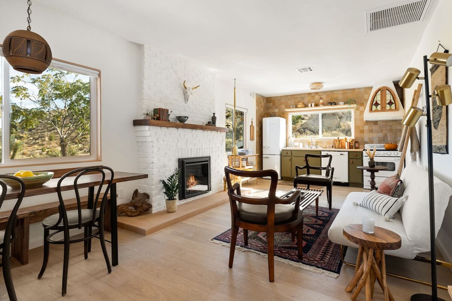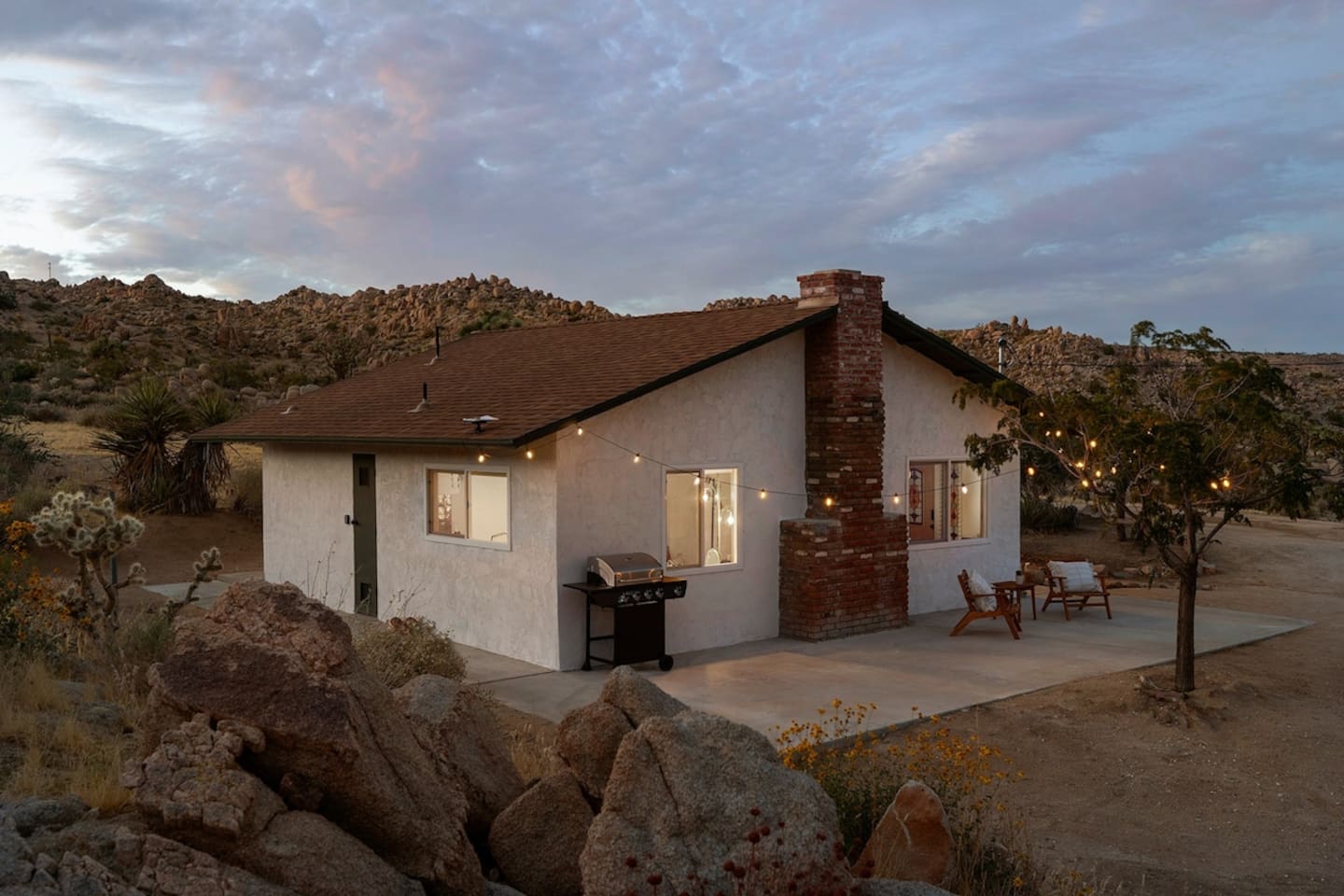 Welcome to Petite Maison, a chic desert cabin tucked among boulders with sweeping views, designer touches, and high-desert serenity. Located on 5 private acres between Joshua Tree National Park and Pioneertown, this stylish 1BR retreat is perfect for couples or solo travelers. Enjoy a king bed, spa-like shower, retro appliances, and unforgettable sunsets by the fire pit. A peaceful escape minutes from top restaurants, trails, and stargazing.