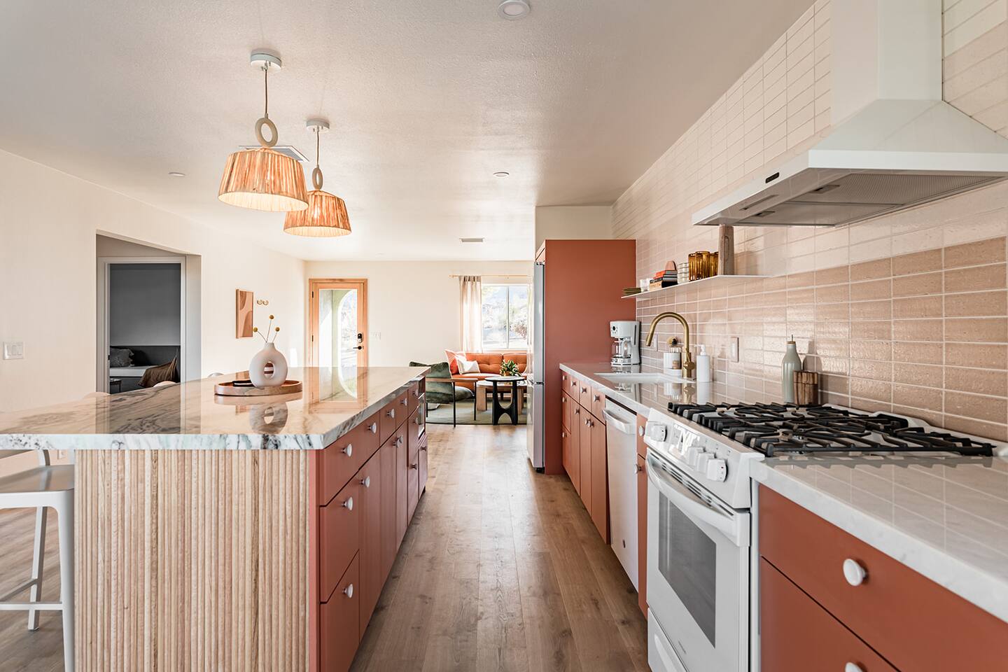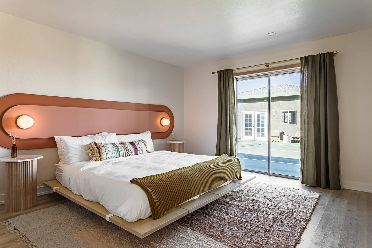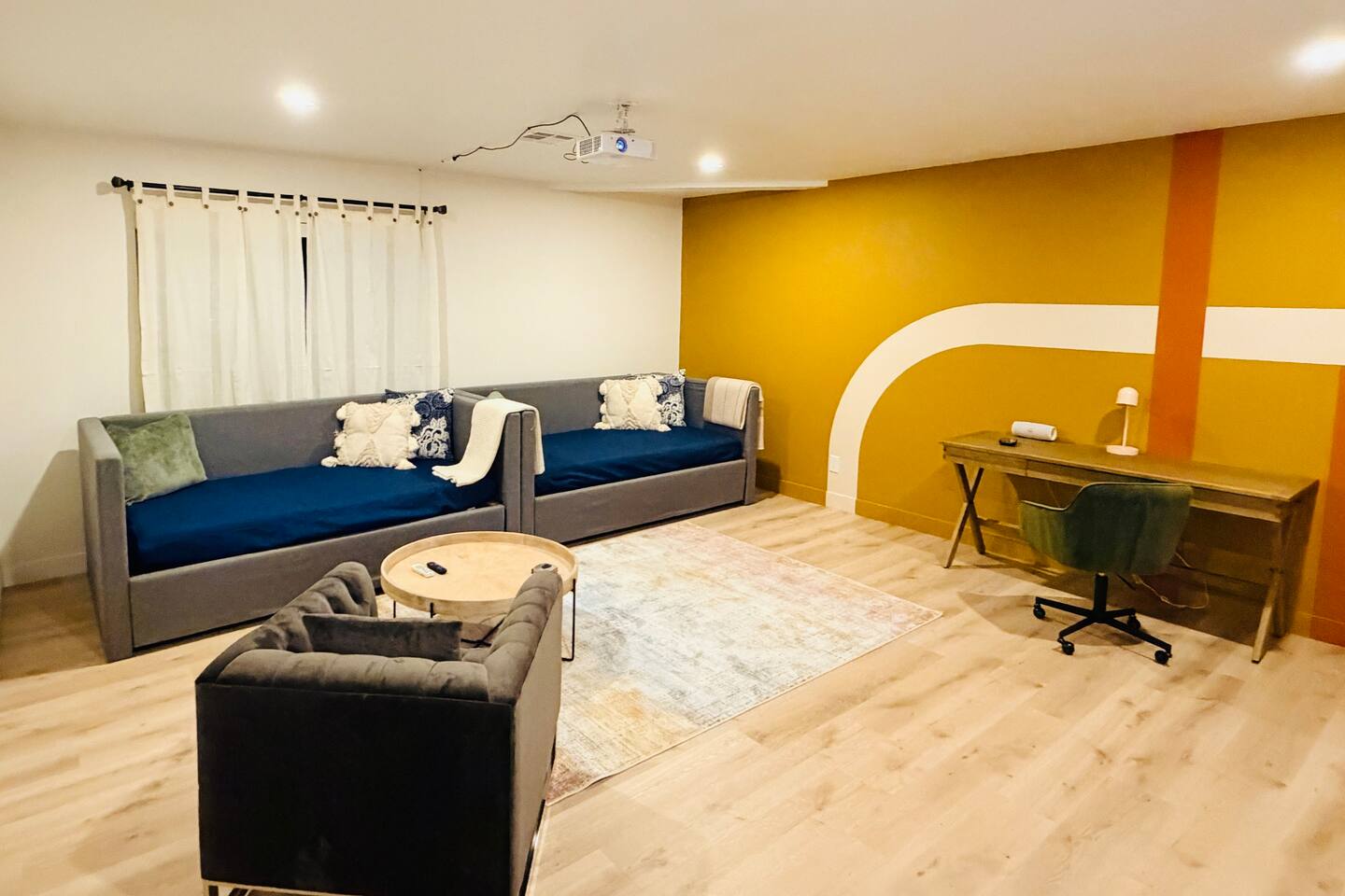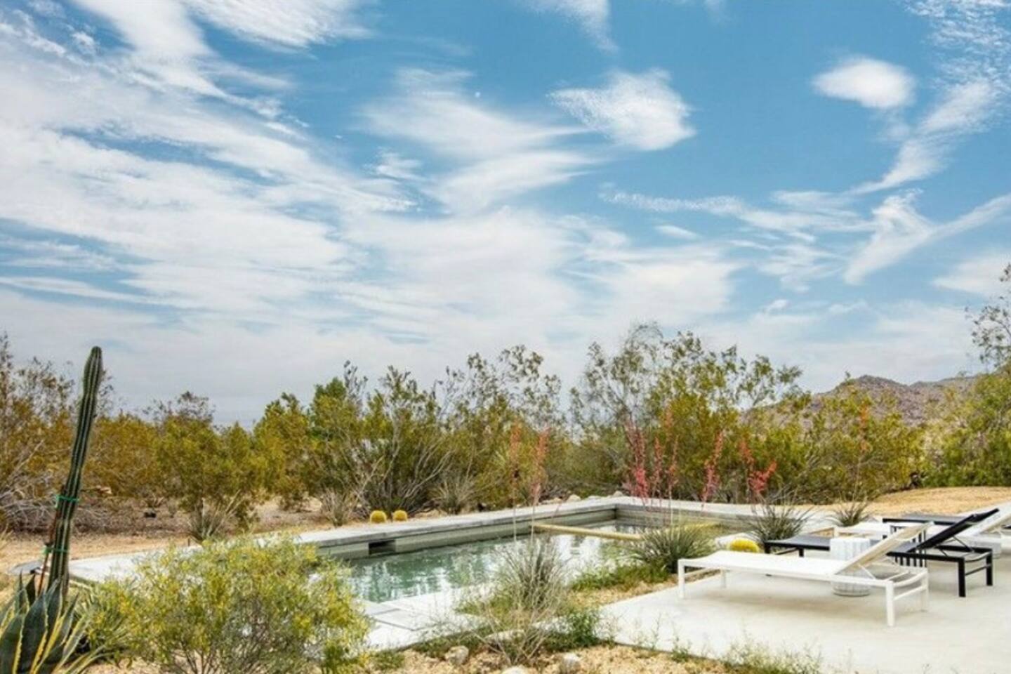 Escape to the desert at Mojave Paddle Club. This refined playground features a pool that can be heated year round, an in ground spa, a game room with pool/ping pong table and a pickleball court. Nestled above the hills of Joshua Tree village, live outdoors with a gas firepit under the stars and al fresco dining. This recently remodeled home blends modern art deco design seamlessly with sparse desert serenity. Centrally located, this is the perfect jumping off point for your hi desert adventures.