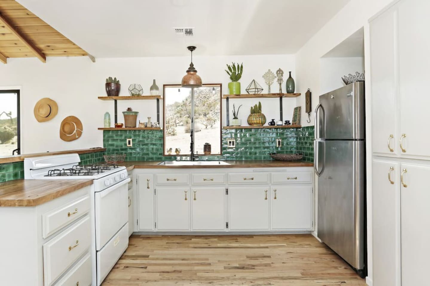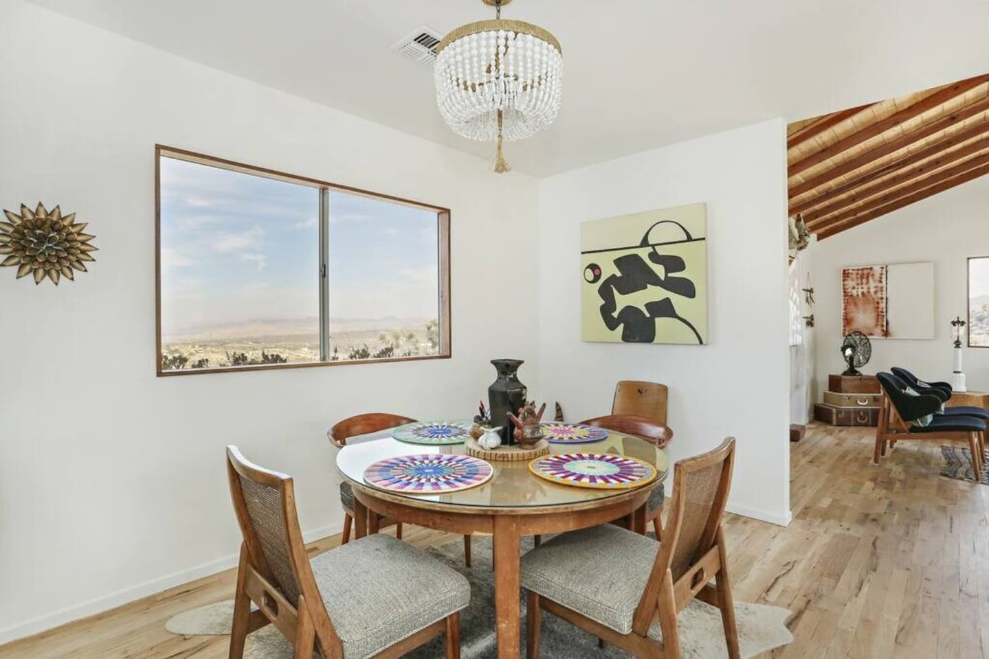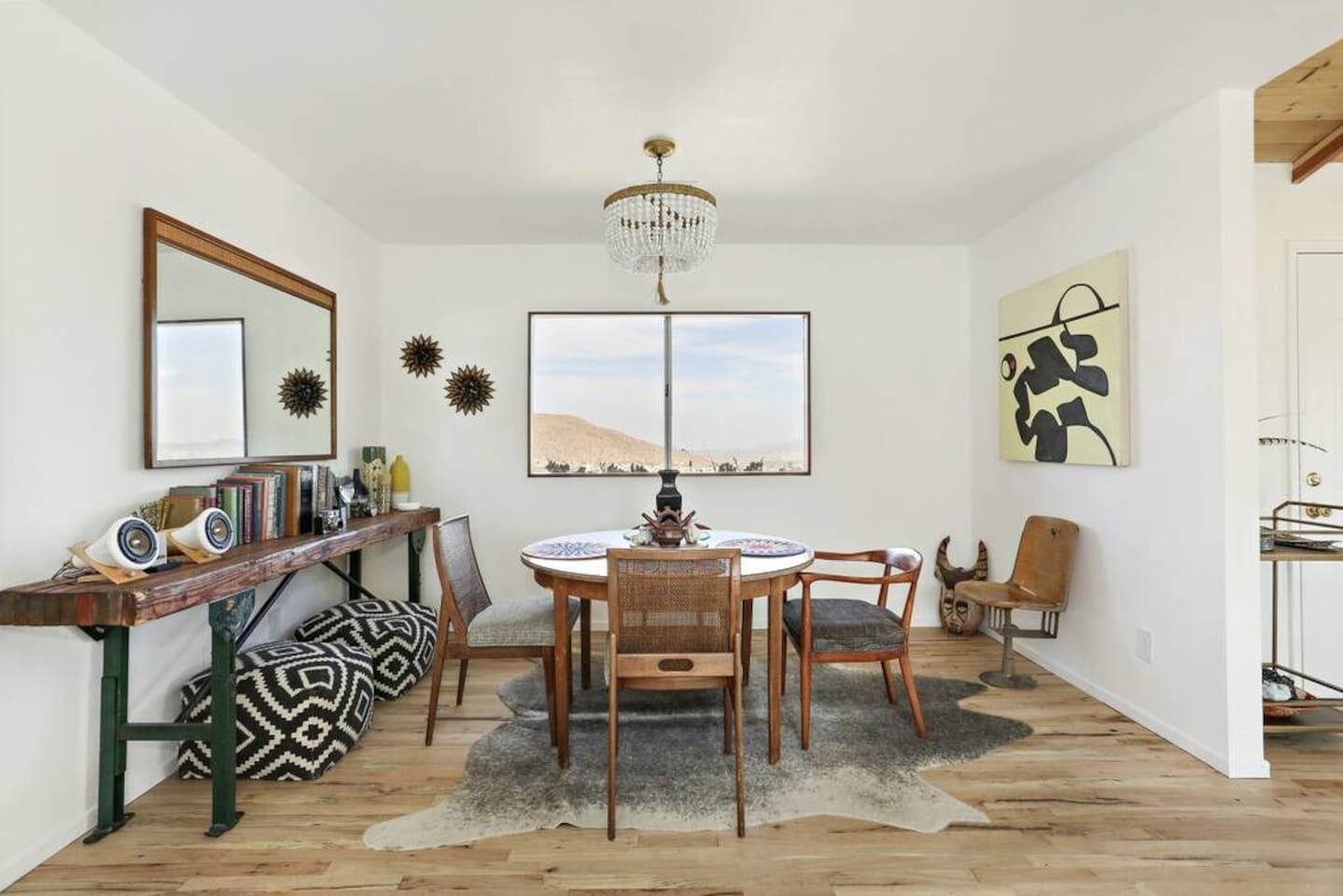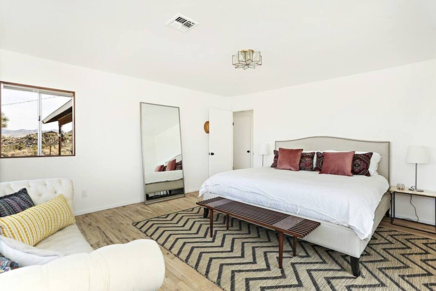 Guests at La Luna Cabin will have full access to the entire property, ensuring a private and exclusive experience. You'll have the freedom to explore every corner of this enchanting retreat, from the cozy interiors to the captivating outdoor spaces. Inside the cabin, you'll find two beautifully appointed bedrooms, providing comfortable sleeping arrangements for a restful night's sleep. The vintage fixtures and unique art throughout the space create an ambiance that is both charming and inspiring. Indulge in the luxury of our two porcelain clawfoot tubs, allowing you to soak away your cares in style. The fully stocked kitchen awaits your culinary adventures, complete with all the necessary appliances, cookware, and utensils. Whether you're preparing a leisurely breakfast or a gourmet feast, you'll find everything you need to satisfy your culinary desires. Step outside and be greeted by the boundless beauty of the desert. The outdoor area is yours to enjoy, with never-ending views that stretch across the horizon. Relax in the outdoor dining area, where you can savor meals under the open sky, surrounded by the tranquility of the natural surroundings. For added convenience, laundry facilities are available on-site. Feel free to utilize the washer and dryer during your stay, allowing you to pack light and maintain fresh clothes throughout your desert adventures. As a guest at La Luna Cabin, you'll have the space and freedom to fully immerse yourself in the unique experience of the Joshua Tree area. Explore the vast landscapes, encounter fascinating wildlife, and discover the hidden treasures of the desert at your own pace. Get ready to embark on an unforgettable journey where vintage charm, natural beauty, and artistic inspiration converge. La Luna Cabin invites you to unlock the door to a world of enchantment and create memories that will last a lifetime.