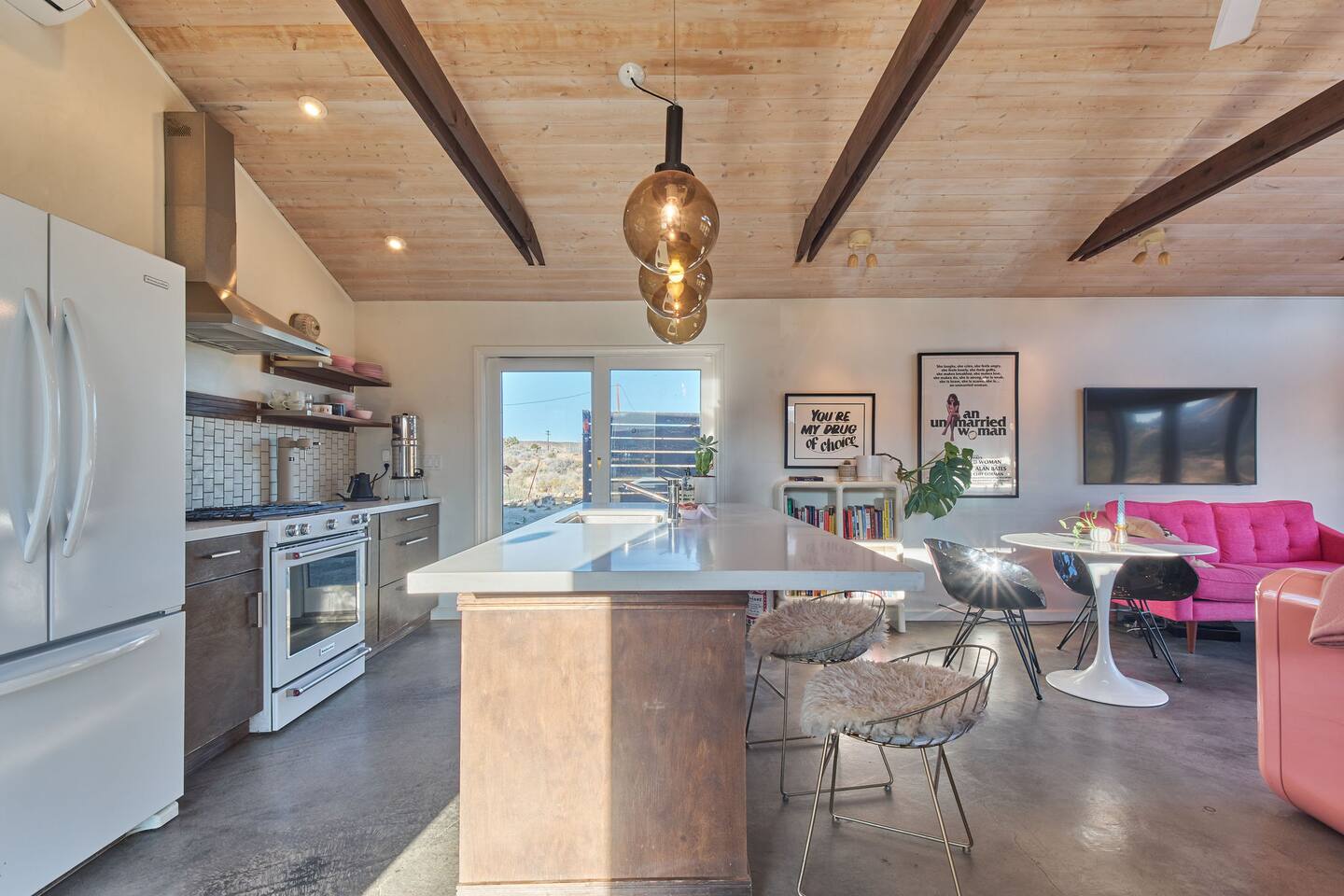 Saddle up pardner to the cutest house in Pioneertown! Surrounded by mountains and rugged desert landscape, this two bedroom has everything you need for your charming weekend away in the high desert. This stylish home has a hot tub for star gazing, a fireplace to stay cozy for cool nights and is close to Pappy's, Red Dog and unbelievable hikes. Giddyup on over, we're excited to host you. :)