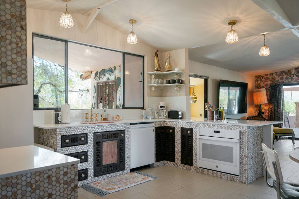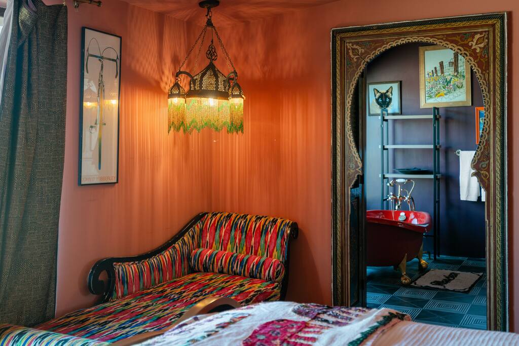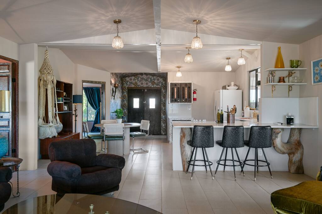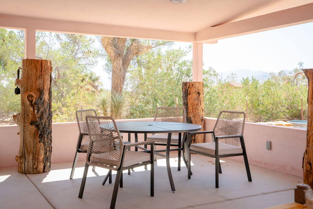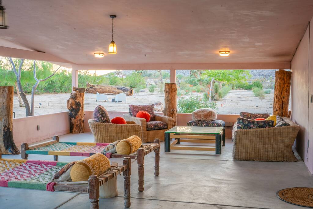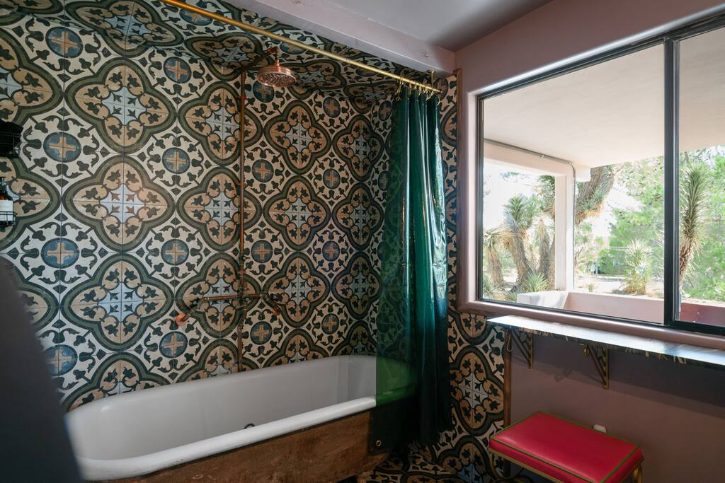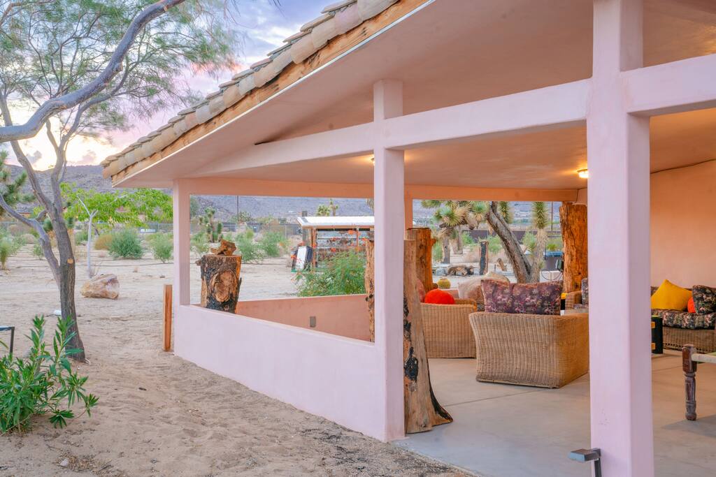 This eclectic estate on the outskirts of downtown Joshua Tree has been reimagined by an LA-based designer who fuses pattern, vintage, ethnic and modern into a totally unique stay. Surrounded by Joshua Trees and mature landscaping, drift into this relaxing and private stay with a hot tub, cowboy tub, firepit and expansive shaded outdoor living room and dining area. Somehow you'll feel both in the past and the future here at The Pink House.