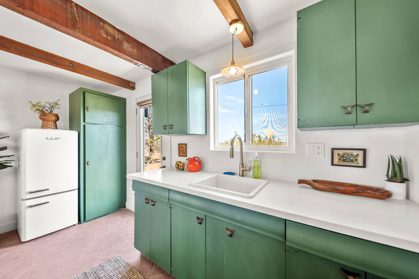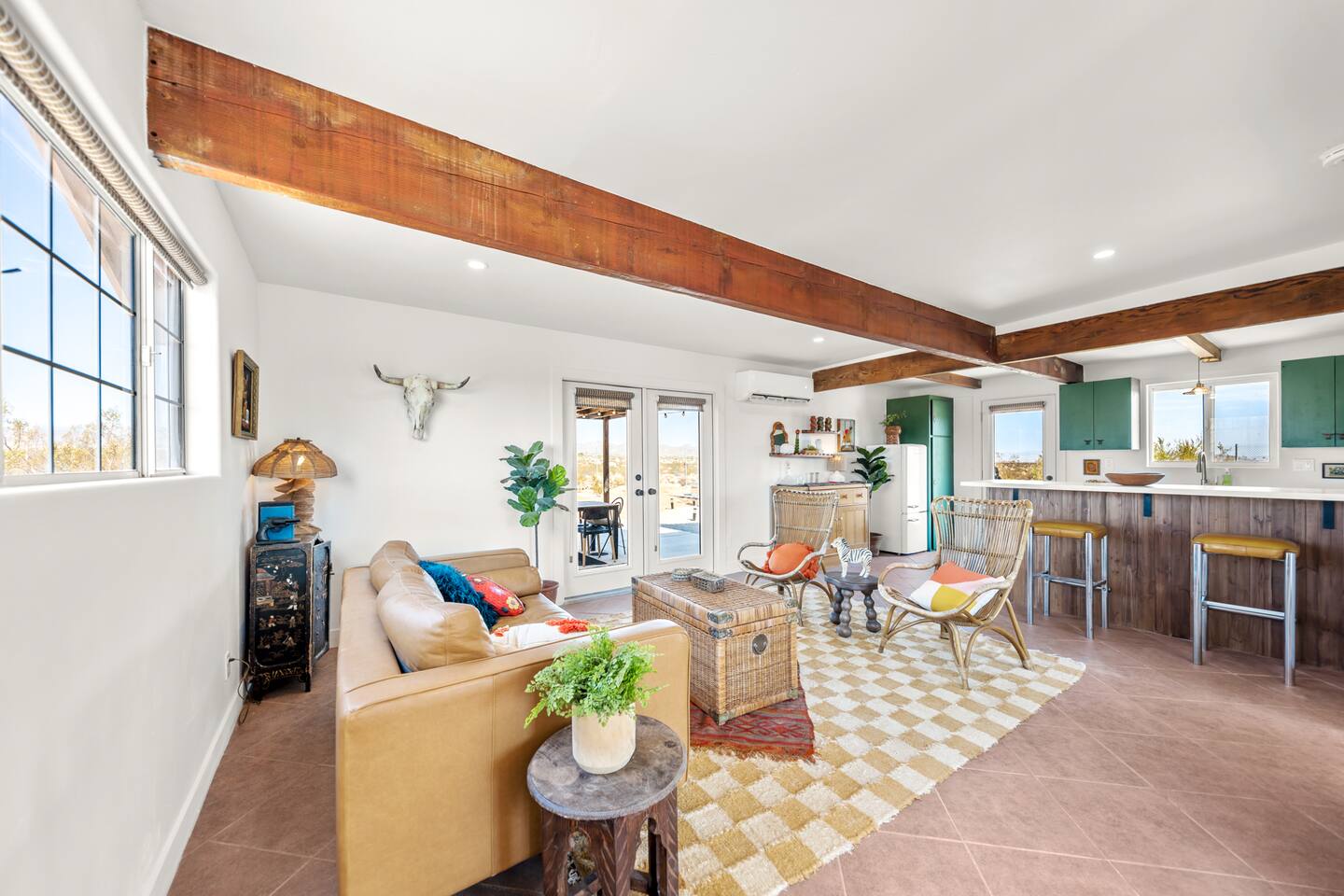 This newly remodeled cabin in Yucca Mesa is fully fenced in and totally private. The home is full of unique, eclectic touches gathered over time and is fun place to rest your head in the high desert. The fenced-in yard has outdoor dining, a fire pit, a horseshoe pit and stock tank pool at hand. Washer/dryer is available, projector TV and home has a minisplit for heating/cooling. You are a 20 minute drive from JT National Park, 15 mins from Joshua Tree town, and 20 mins from Pioneertown.