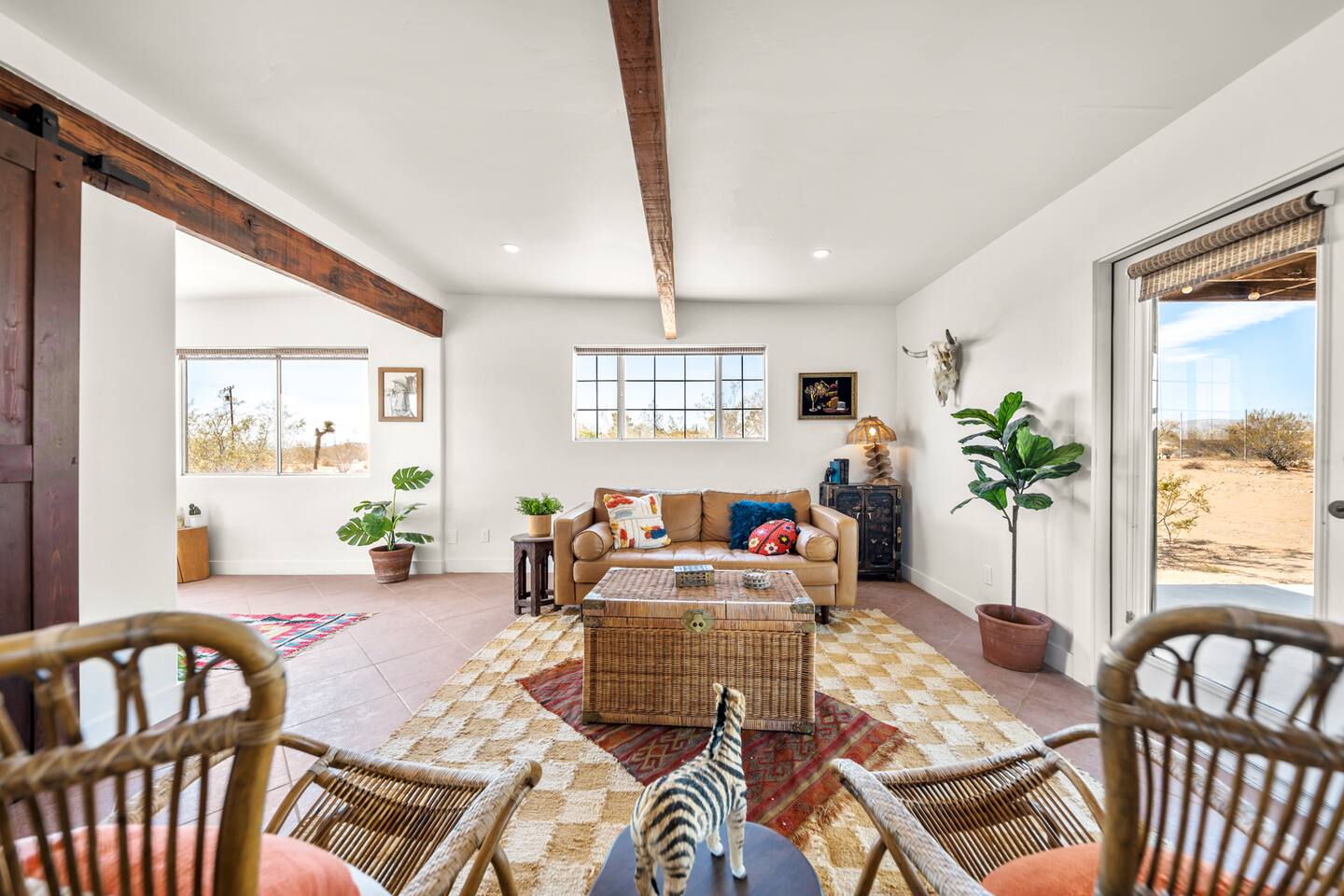 This cute little one bedroom cabin sits on 1.25 fully fenced acres with sweeping desert views that overlook the San Bernardino mountains and a backyard that faces sunset.