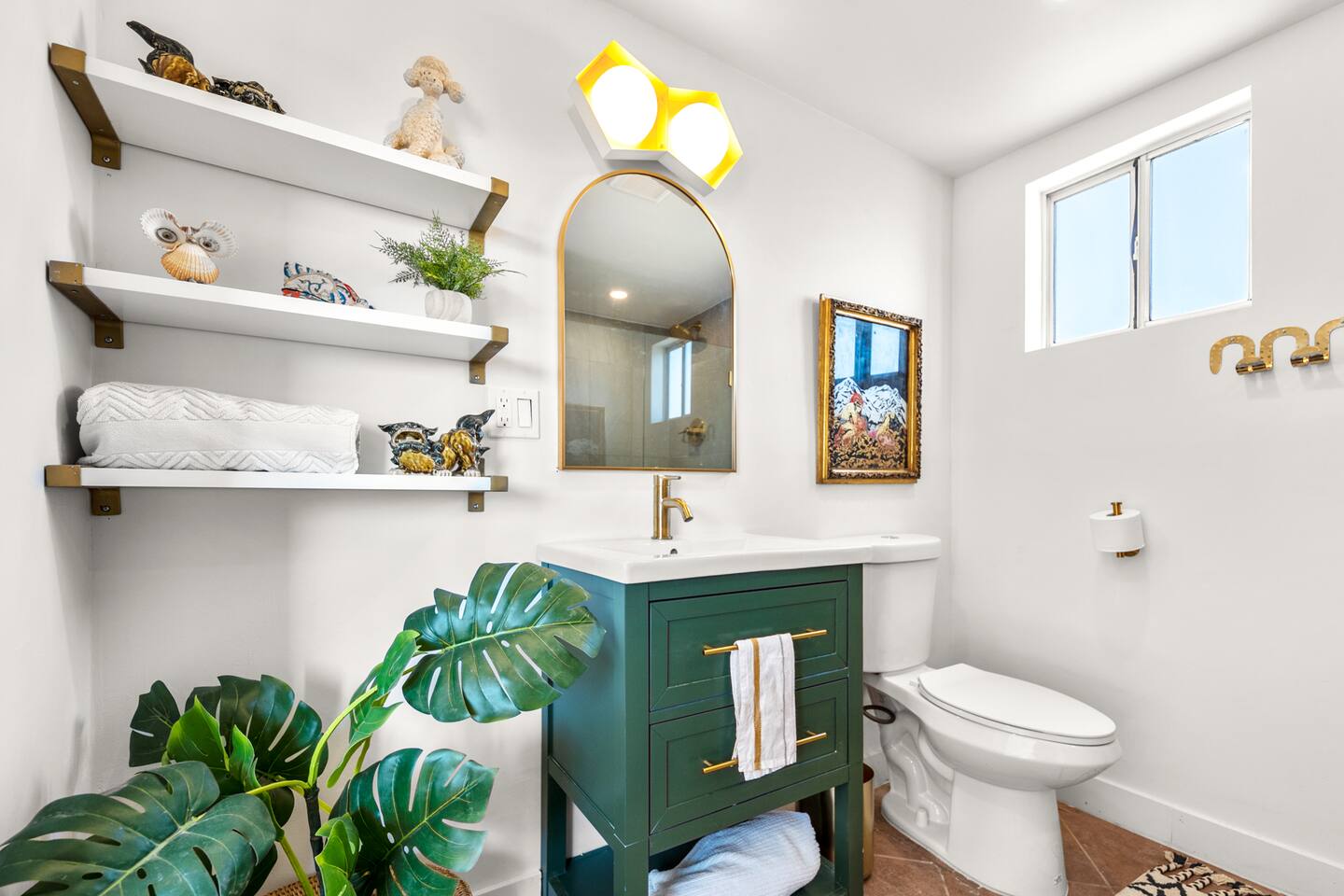 The stock tank pool is available in warmer months and the backyard firepit is great for stargazing. The outdoor dining table has string lights at night and the horseshoe pit is great for lazy afternoons.