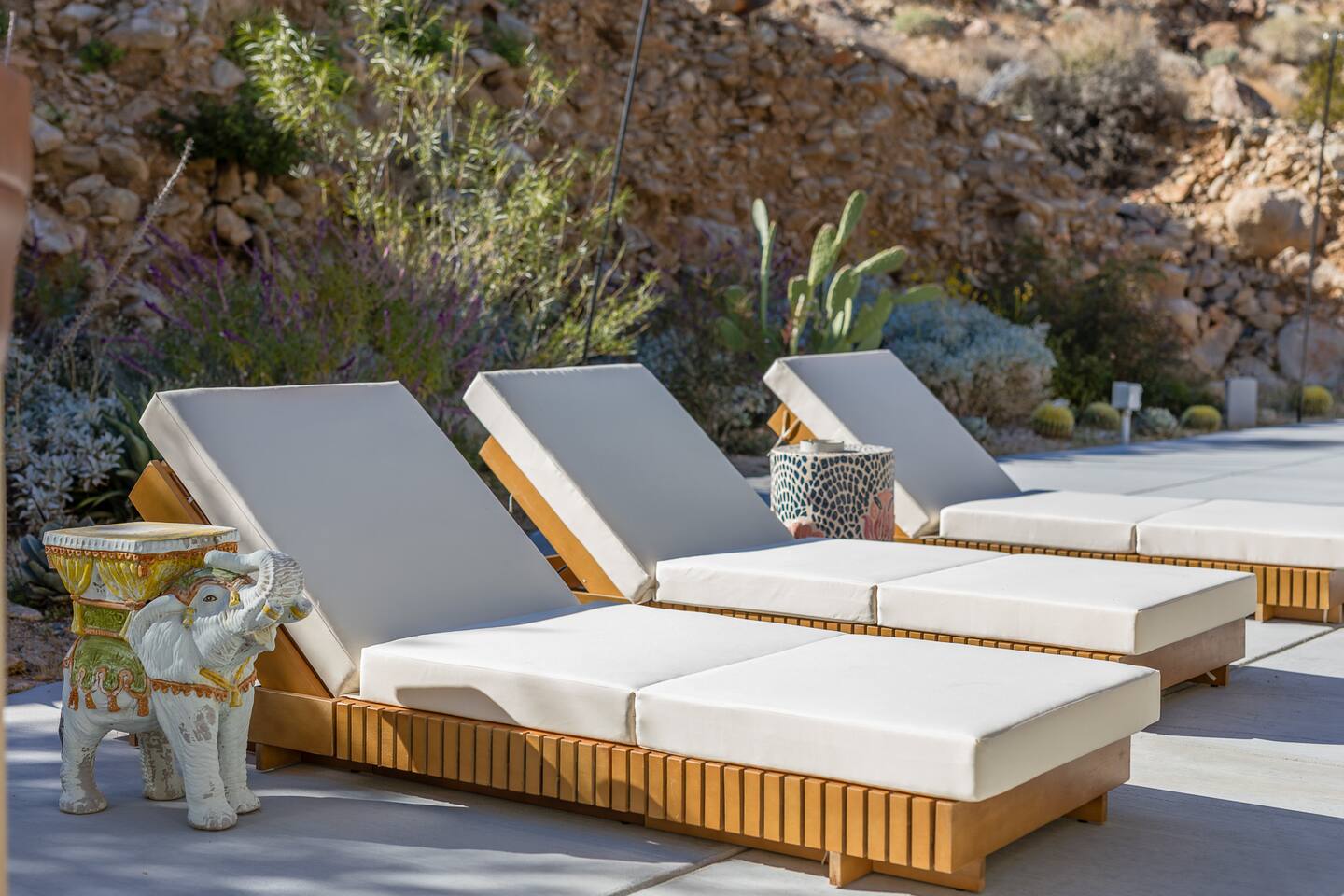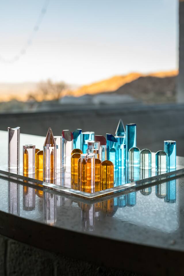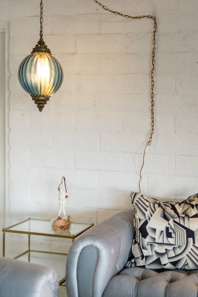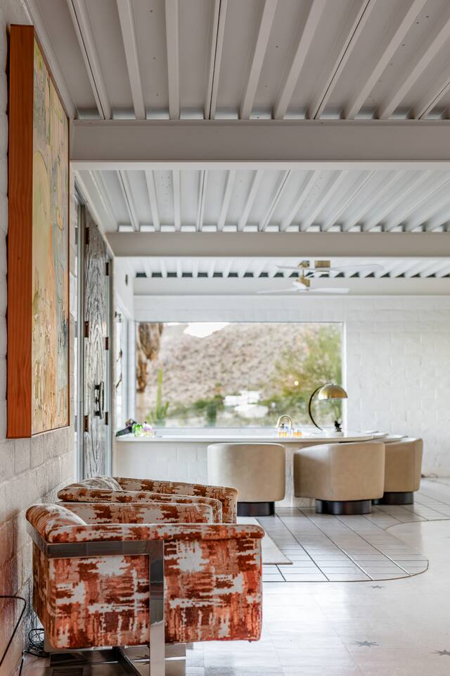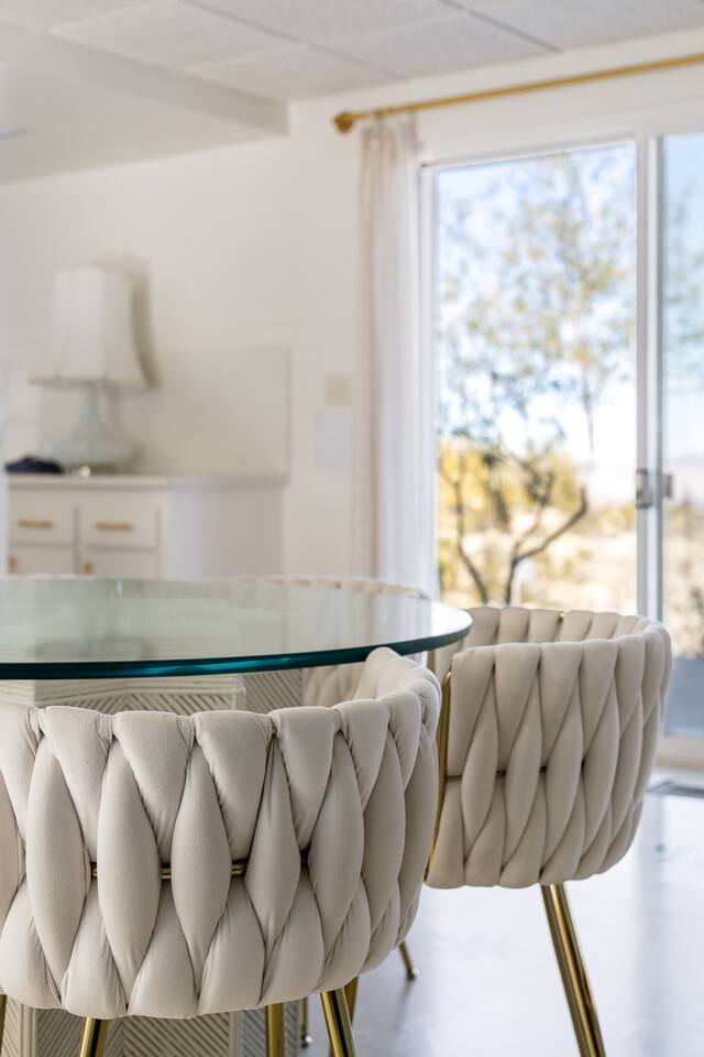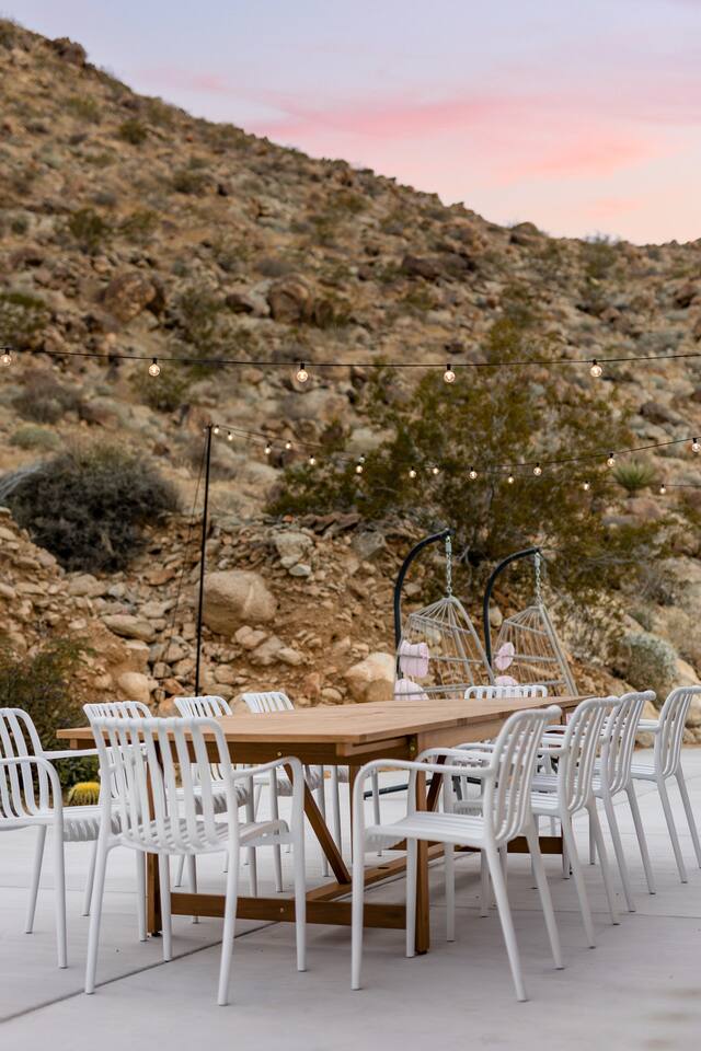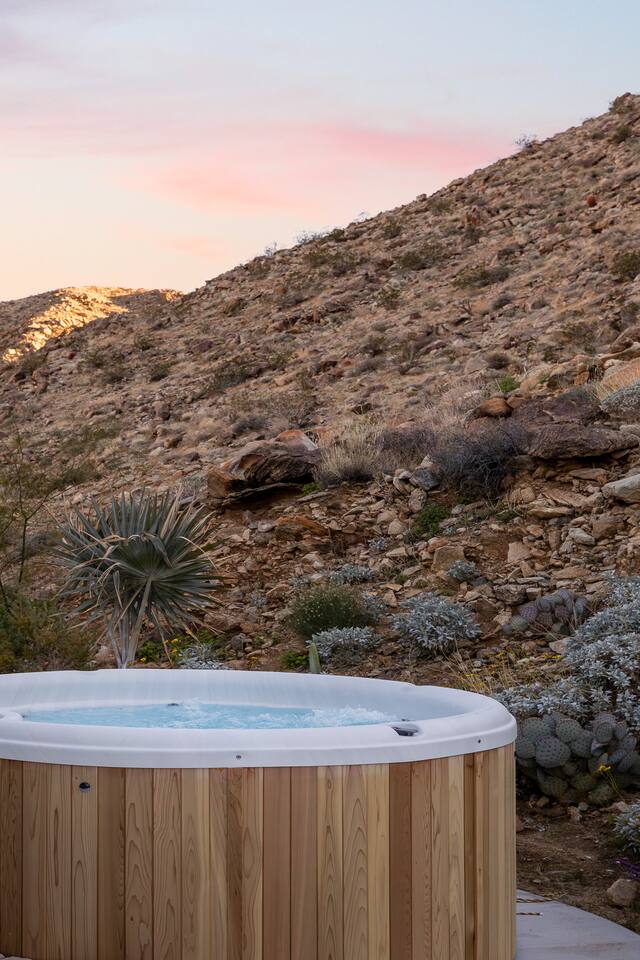 Luxury supreme. We waited and waited for this house to be available....15 YEARS!!!!! I used to walk by it on my way to the 49 palms canyon oasis and say "one day I will live there!" It is out of the hustle and bustle of south Joshua tree, and just past Indian Cove. It literally sits as the Joshua Tree National Parks' neighbor. It's original owner/builder perched it on the hill in the early 1950's. It's a house that would not be possible to build today. We consider it an honor to own our home and feel like it's a vibe and a spot that is important to share. It's meant for dreamers, thinkers, and is a house that epitomizes SPEAK EASY! There is nothing like it. We tried keeping the home in its period rather than retrofit modernity into it. Hence, no WIFI, real landlines and satellite tv. But truly, when you're there you want to have a smoke on the patio, ruminate over your visions and take in the long view! We can't really describe the feeling, it's in the experience!