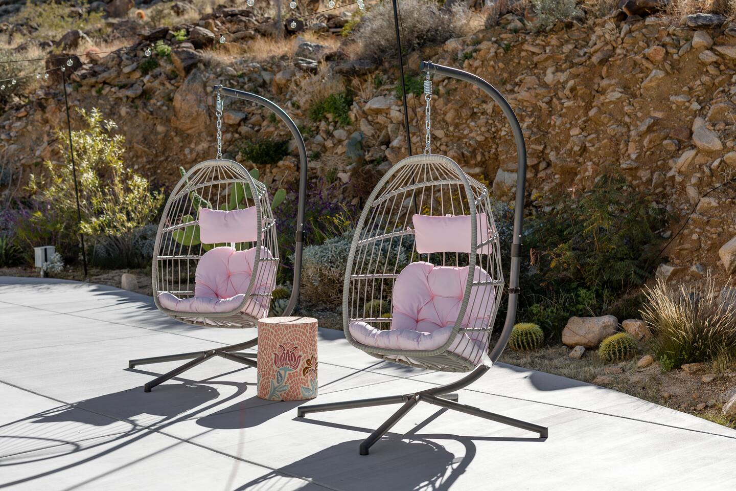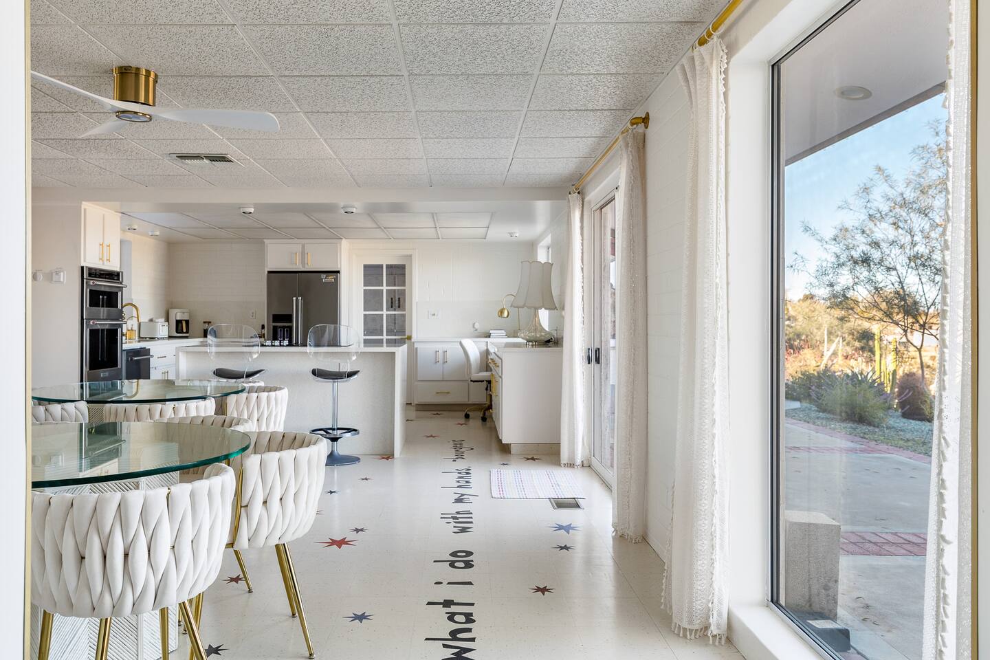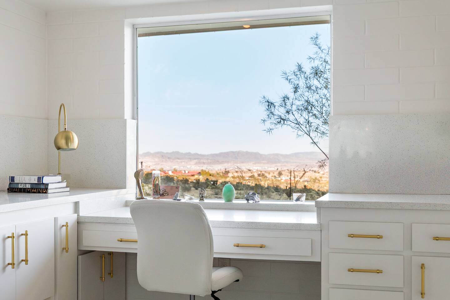 Luxury supreme. We waited and waited for this house to be available....15 YEARS!!!!! I used to walk by it on my way to the 49 palms canyon oasis and say "one day I will live there!" It is out of the hustle and bustle of south Joshua tree, and just past Indian Cove. It literally sits as the Joshua Tree National Parks' neighbor. It's original owner/builder perched it on the hill in the early 1950's. It's a house that would not be possible to build today. We consider it an honor to own our home and feel like it's a vibe and a spot that is important to share. It's meant for dreamers, thinkers, and is a house that epitomizes SPEAK EASY! There is nothing like it. We tried keeping the home in its period rather than retrofit modernity into it. Hence, no WIFI, real landlines and satellite tv. But truly, when you're there you want to have a smoke on the patio, ruminate over your visions and take in the long view! We can't really describe the feeling, it's in the experience!