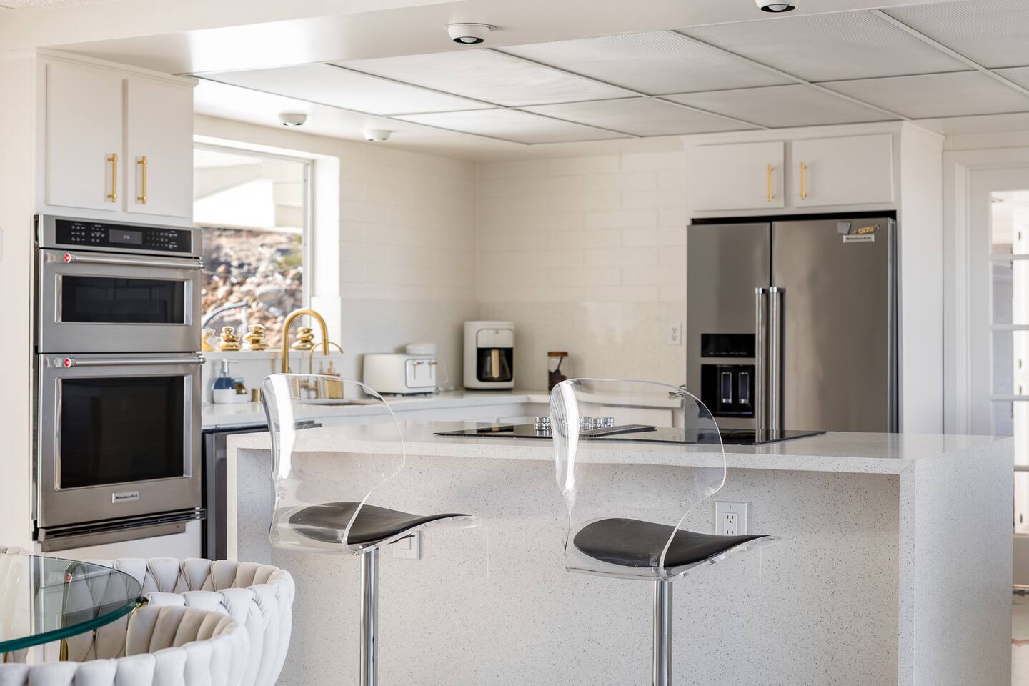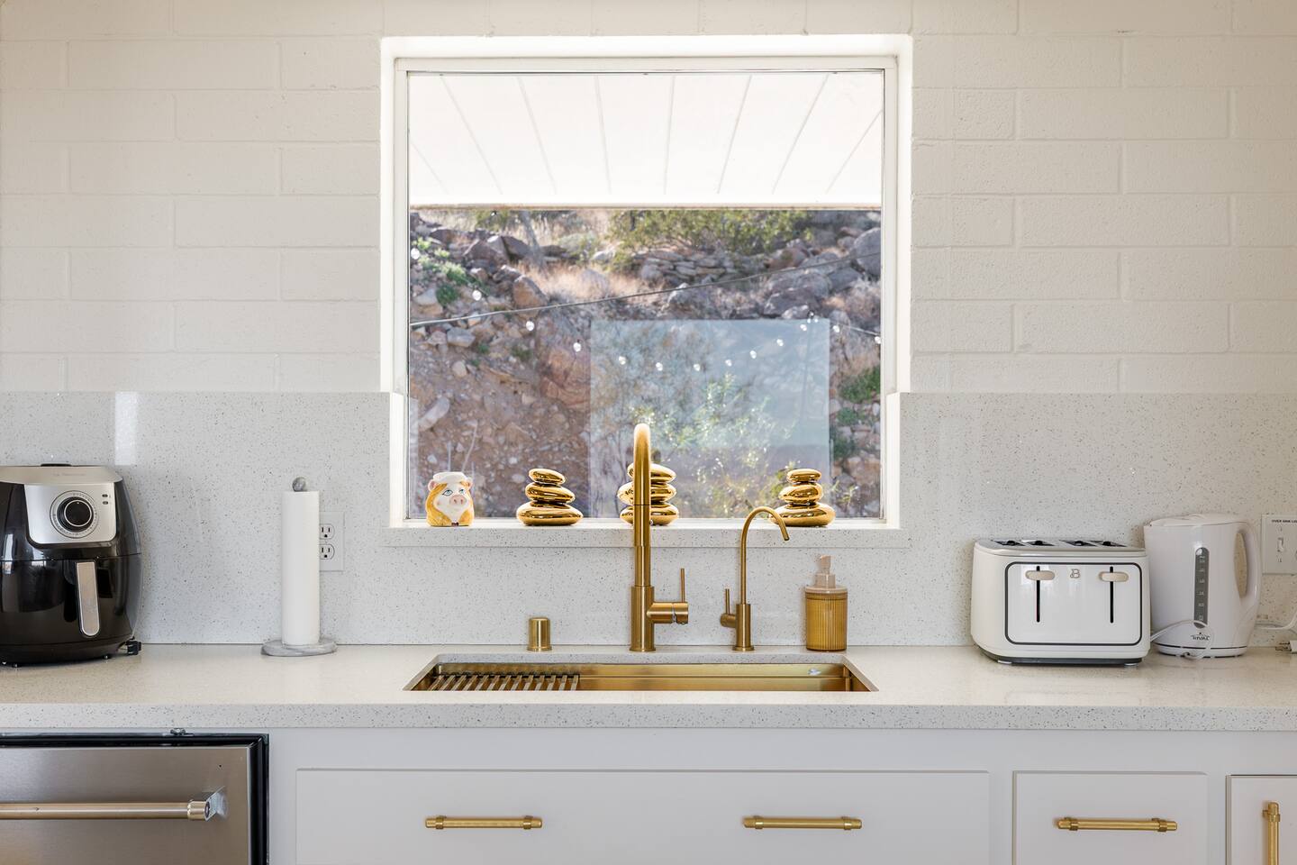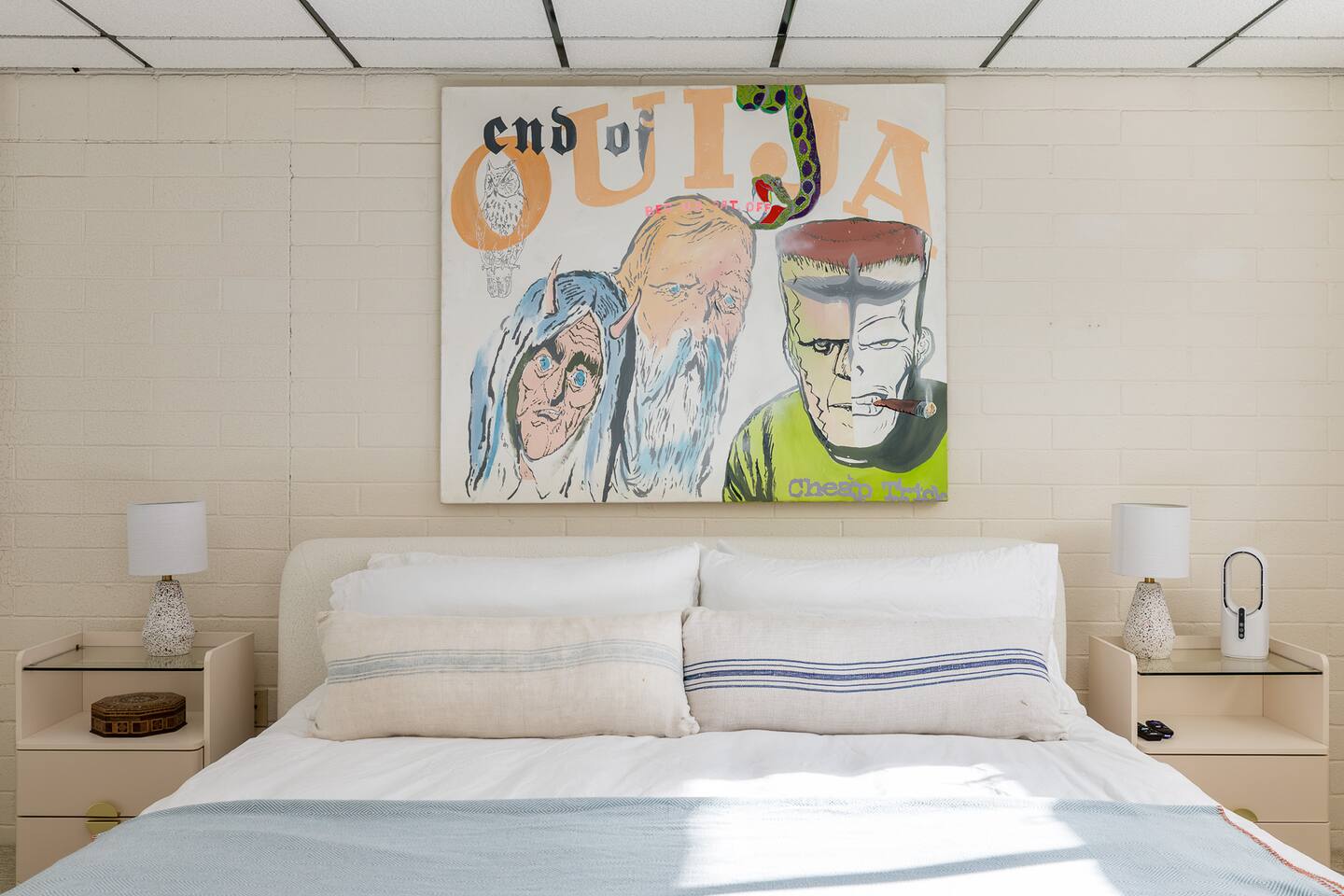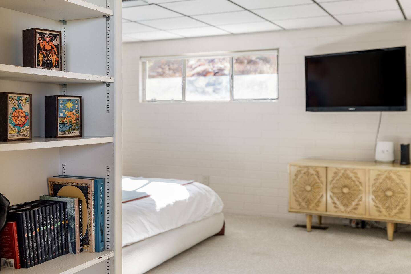 Luxury supreme. We waited and waited for this house to be available....15 YEARS!!!!! I used to walk by it on my way to the 49 palms canyon oasis and say "one day I will live there!" It is out of the hustle and bustle of south Joshua tree, and just past Indian Cove. It literally sits as the Joshua Tree National Parks' neighbor. It's original owner/builder perched it on the hill in the early 1950's. It's a house that would not be possible to build today. We consider it an honor to own our home and feel like it's a vibe and a spot that is important to share. It's meant for dreamers, thinkers, and is a house that epitomizes SPEAK EASY! There is nothing like it. We tried keeping the home in its period rather than retrofit modernity into it. Hence, no WIFI, real landlines and satellite tv. But truly, when you're there you want to have a smoke on the patio, ruminate over your visions and take in the long view! We can't really describe the feeling, it's in the experience!