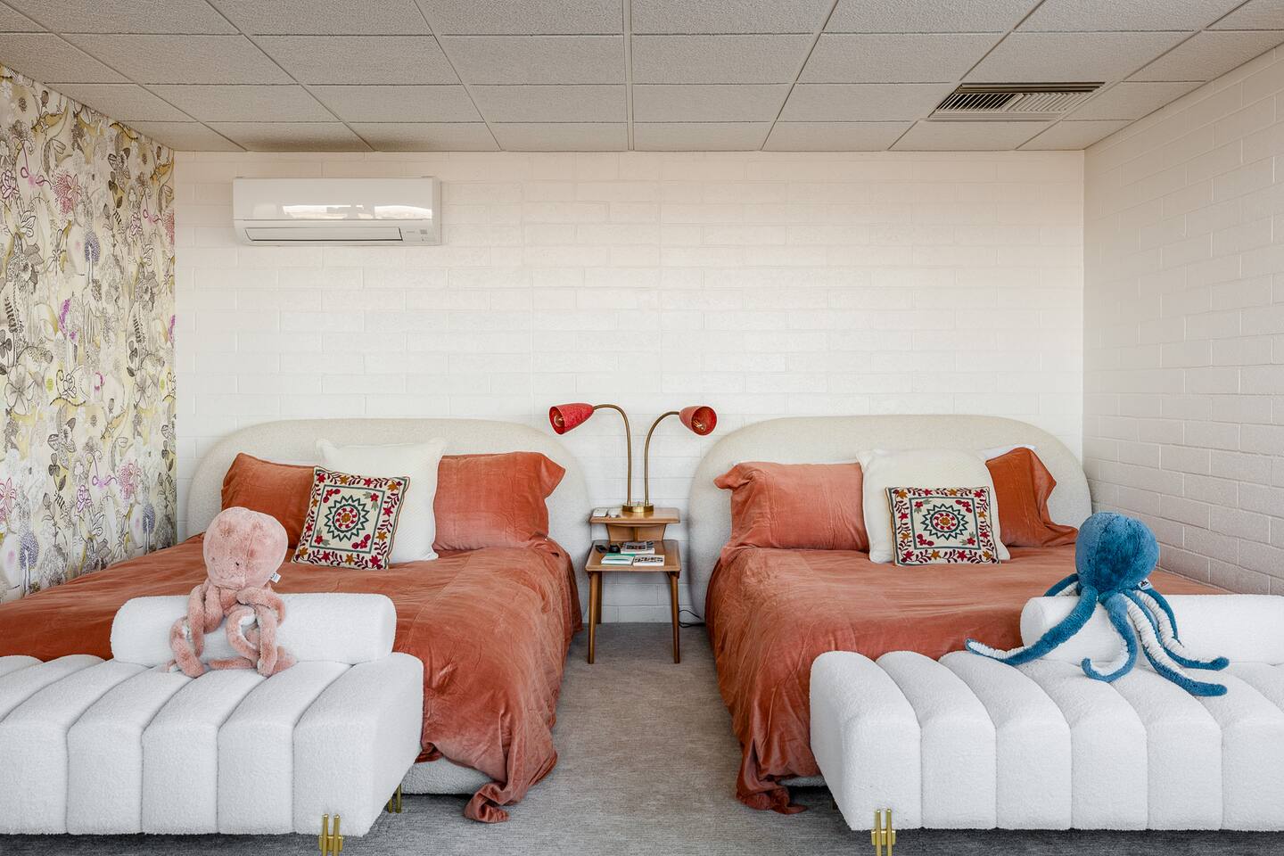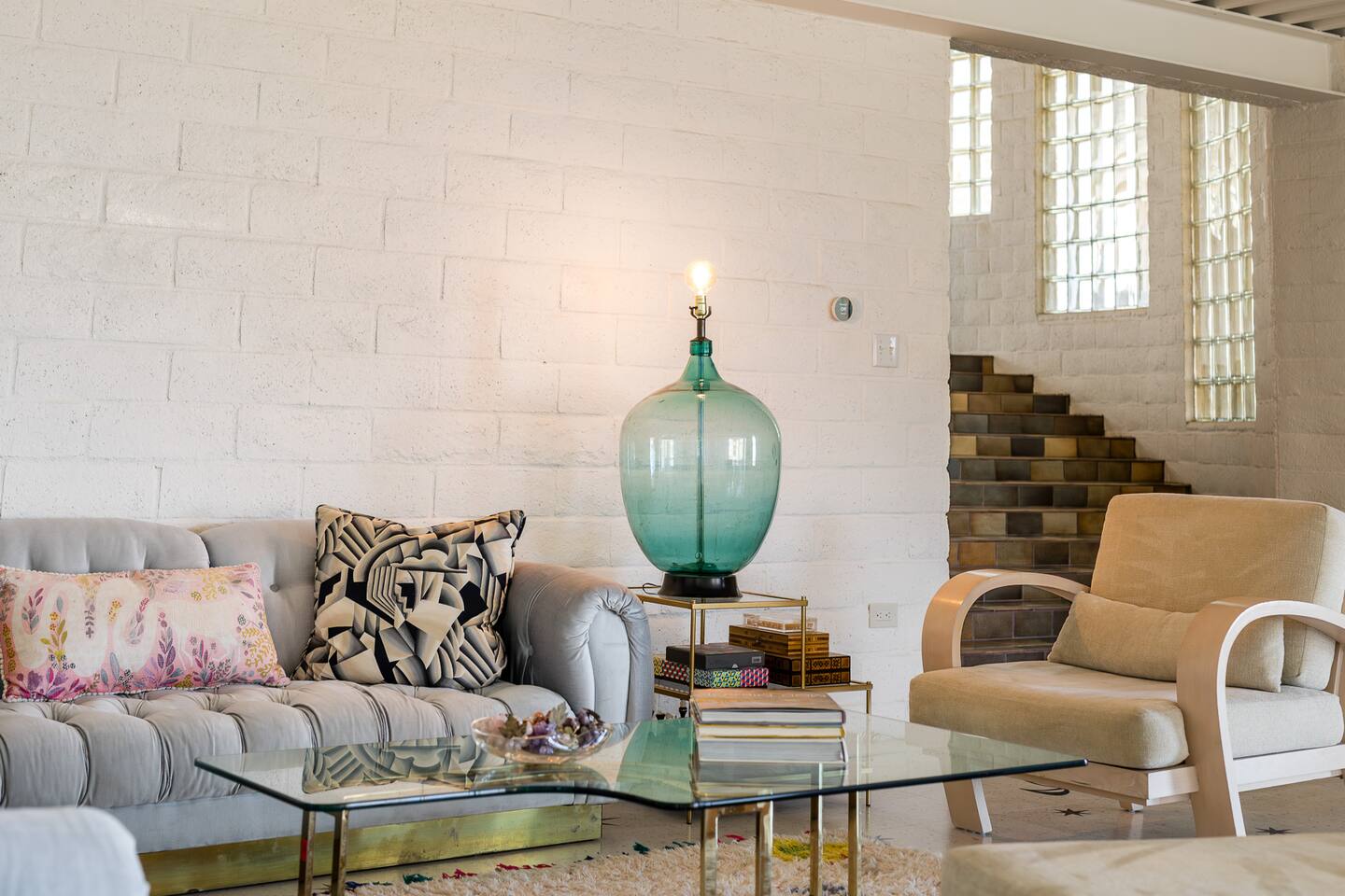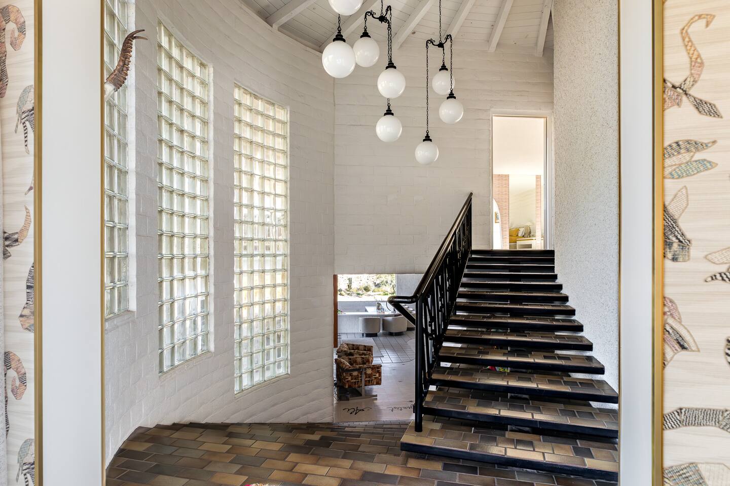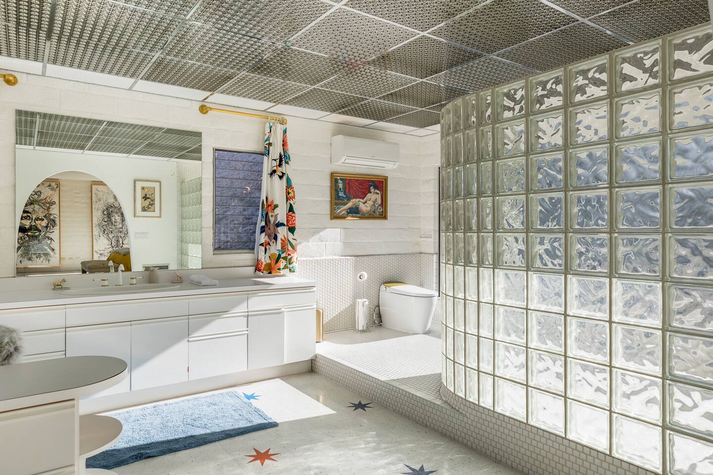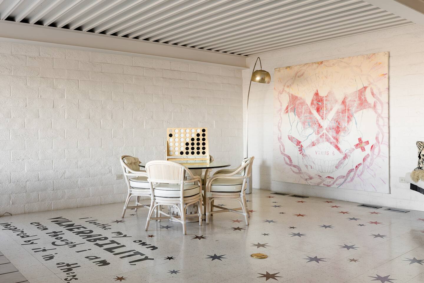 Nestled against the rocks in 29 Palms, Zainaland is a stunning, 3 bedroom, 3.5 bathroom unique estate. Live outdoors with sweeping views, a hot tub, wood burning firepit and outdoor dining space. Inside, relive Joshua Tree in the 70's with this captivating home full of original details and eclectic decor. Cozy up to the bar in the gigantic living room and toast to the desert in this wildly exotic, but elegant home.